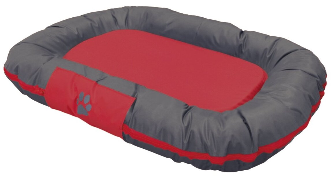 Овальный лежак идеально подходит для полноценного отдыха собаки, как внутри помещения, так и на улице. Свежий цветовой акцент создается в этом варианте оформления с красным цветом. Изготовлен из прочной нейлоновой ткани. Чехол полностью снимается благодаря молнии. Нейлон, из которого изготовлен чехол, отталкивает грязь и влагу. Стирка вручную при 30 °С.