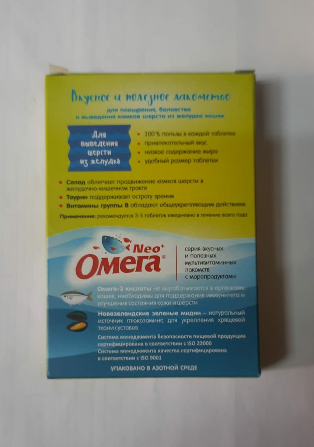 Заказываю в этом магазине не в первый раз NEO+ ОМЕГА Мультивитаминное лакомство для выведения шерсти из желудка у кошек по 90 таблеток в пакетике, котейки даже просят его и эффект есть положительный. Радует бонусы в магазине ЧЕТЫРЕ ЛАПЫ.