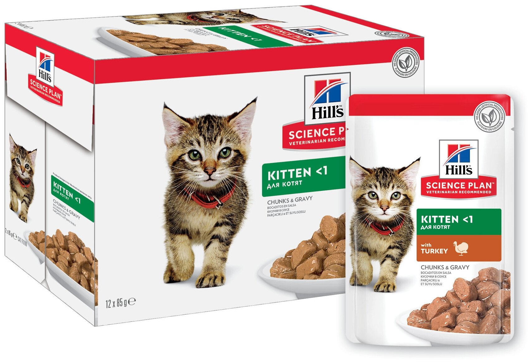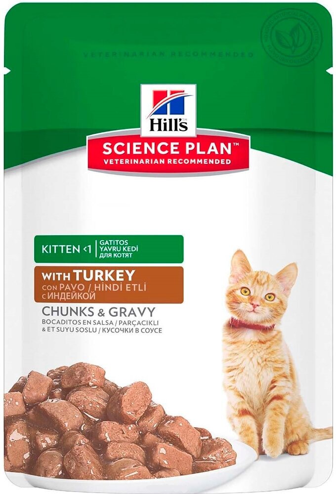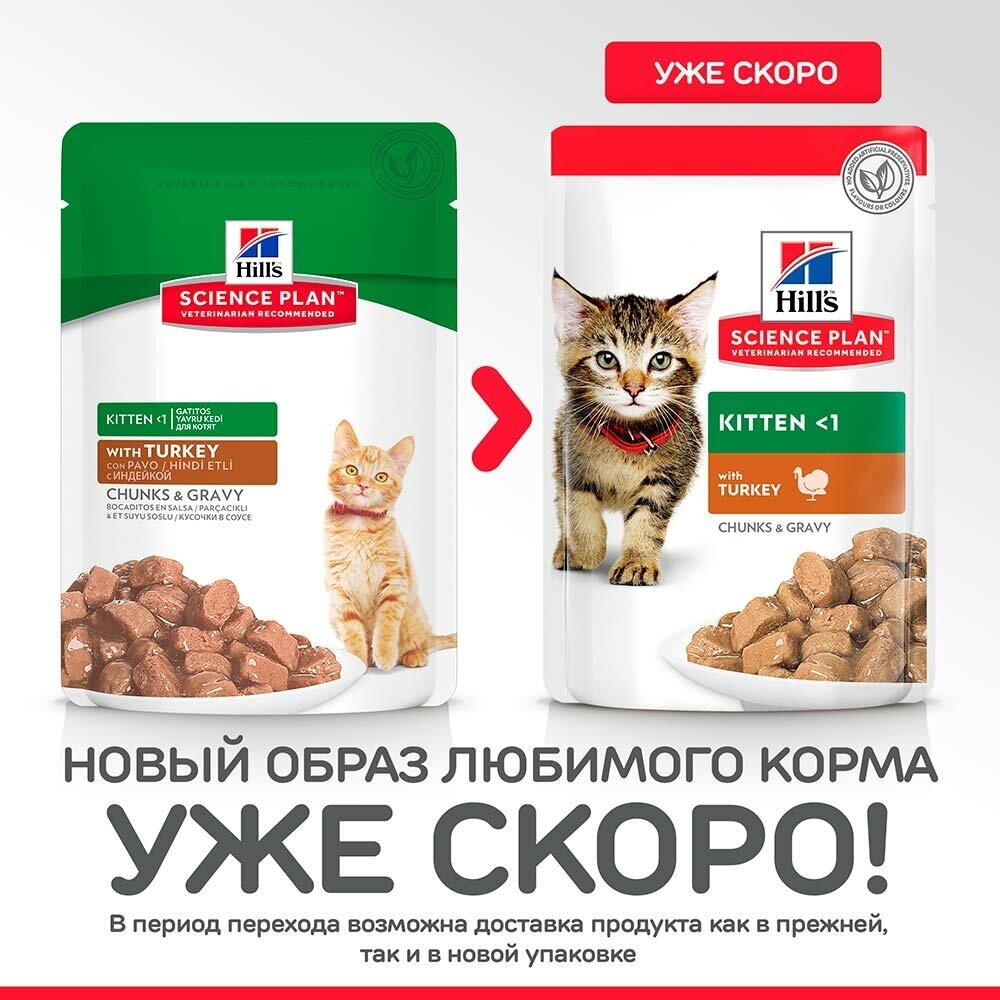 Вашему маленькому котенку нужен высококачественный корм, поддерживающий его активный образ жизни.Именно поэтому влажный корм для котят с индейкой HILL'S SCIENCE PLAN Kitten бережно приготовлен для удовлетворения потребностей растущих котят, для здорового роста и полного раскрытия заложенного потенциала.Созданный с ДГК из рыбьего жира для правильного развития мозга и здоровья глаз у котят, этот корм для молодых кошек, изготовленный из высококачественных ингредиентов, содержит качественный белок для роста мышц и здорового развития котят.Сбаланированный уровень минералов дляукрепления костей и крепких зубов, чтобы ваш котенок был здоров и хорошо себя чувствовал в первые дни его жизни.Мы с гордостью представляем вам новый образ любимого корма Hill's Science Plan. В некоторых из наших кормов также изменились названия, форма гранул и формулы. Ключевые преимущества: Антиоксиданты с клинически подтвержденным эффектом для поддержания здорового иммунитета.Натуральные высококачественные ингредиенты для чувствительного пищеварения.Сбалансированный набор минералов для укрепления костей и зубов.ДГК из рыбьего жира для поддержания здоровья глаз и развития мозга.Качественные протеины для роста мышечной массы и правильного развития котят.Тщательно сбалансированное питание для поддержания иммунитета и гармоничного развития котят в форме мусса, с превосходным вкусом индейки.Состав:Мясо и производные животного происхождения, экстракты растительного белка, злаки, производные растительного происхождения, минералы, рыба и рыбные производные, различные сахара, яйцо и его производные, масла и жиры.