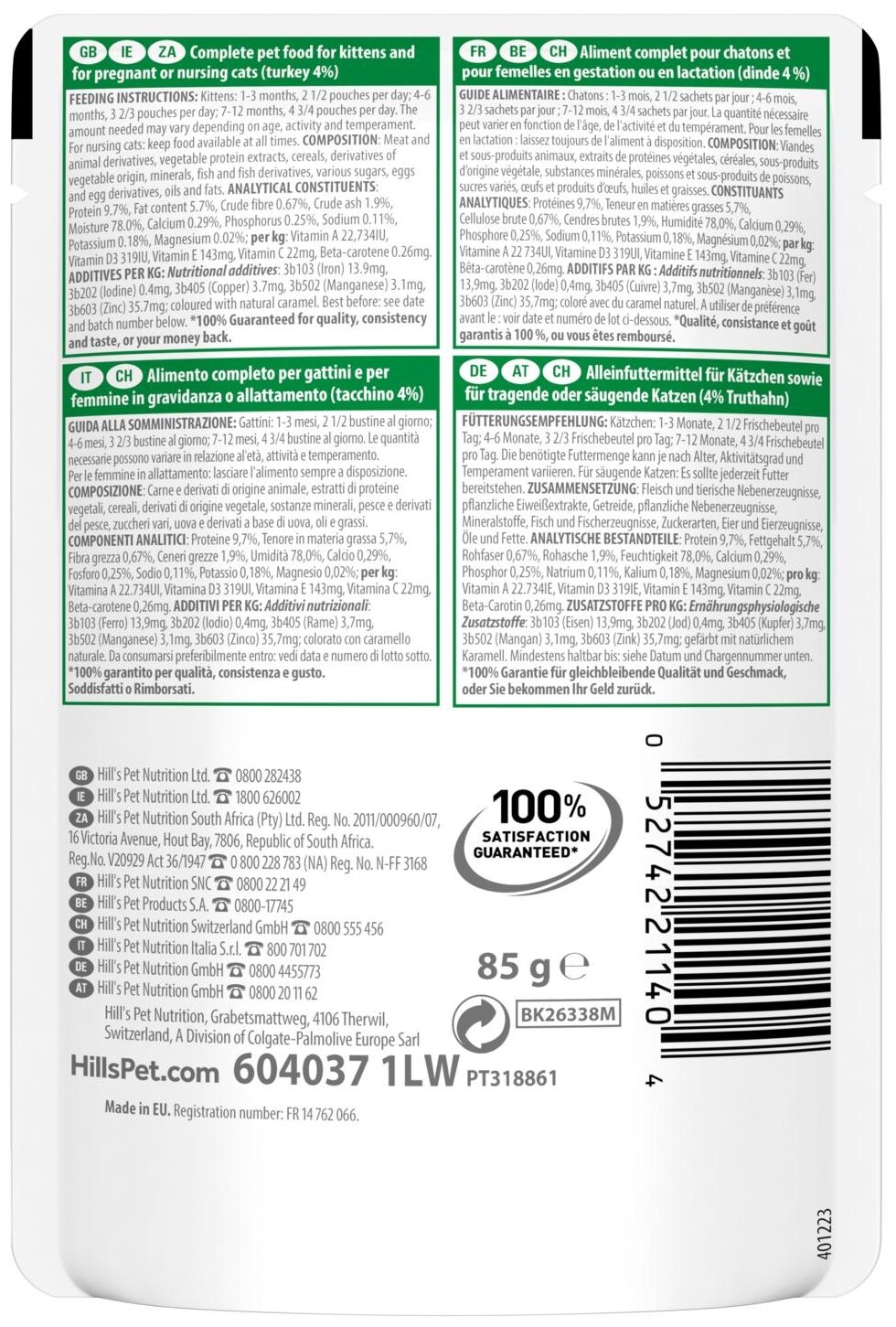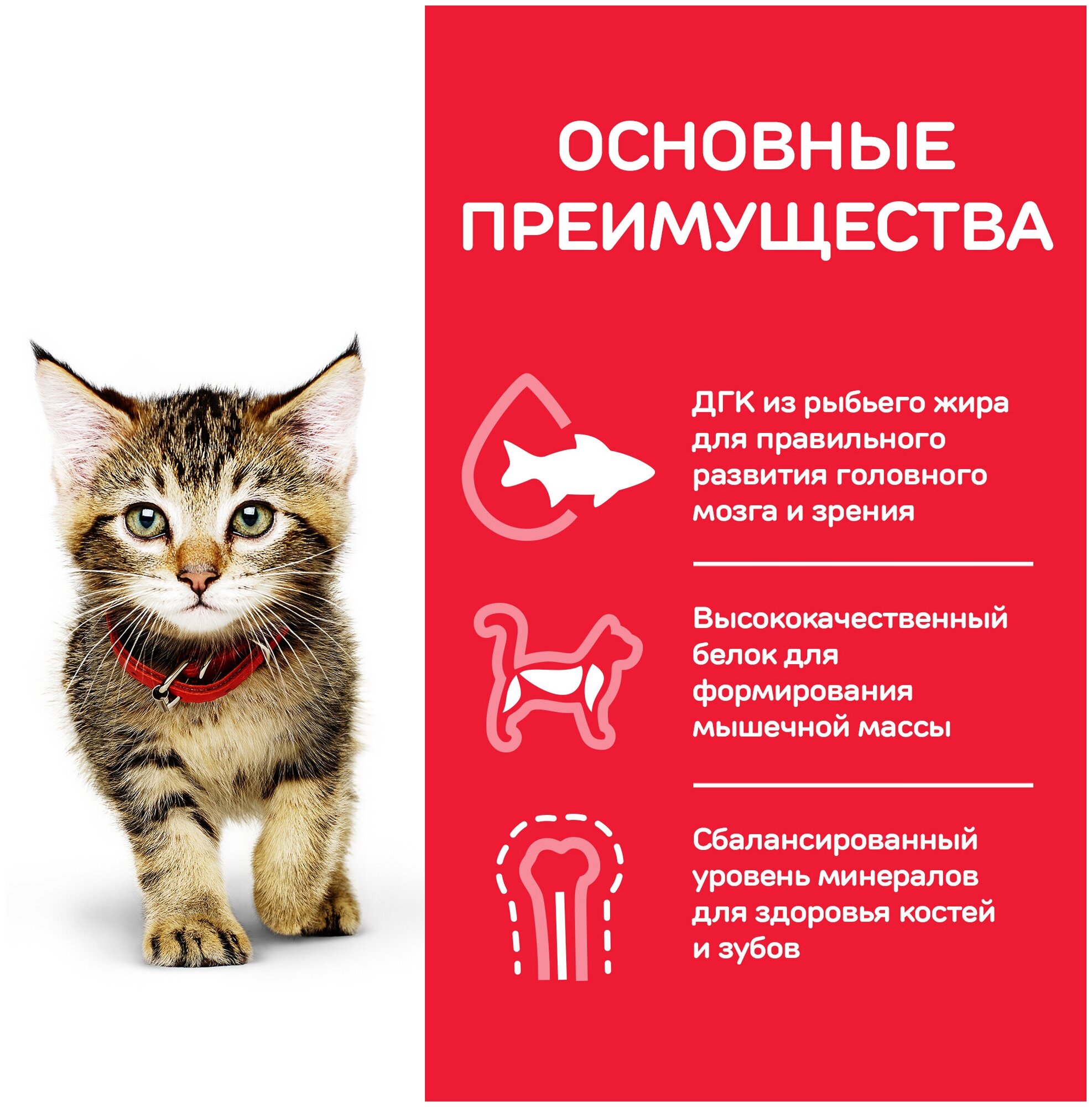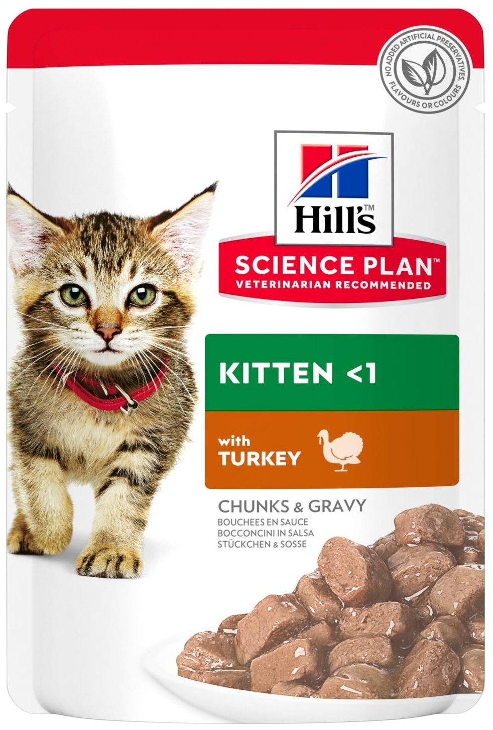 Вашему маленькому котенку нужен высококачественный корм, поддерживающий его активный образ жизни.Именно поэтому влажный корм для котят с индейкой HILL'S SCIENCE PLAN Kitten бережно приготовлен для удовлетворения потребностей растущих котят, для здорового роста и полного раскрытия заложенного потенциала.Созданный с ДГК из рыбьего жира для правильного развития мозга и здоровья глаз у котят, этот корм для молодых кошек, изготовленный из высококачественных ингредиентов, содержит качественный белок для роста мышц и здорового развития котят.Сбаланированный уровень минералов дляукрепления костей и крепких зубов, чтобы ваш котенок был здоров и хорошо себя чувствовал в первые дни его жизни.Мы с гордостью представляем вам новый образ любимого корма Hill's Science Plan. В некоторых из наших кормов также изменились названия, форма гранул и формулы. Ключевые преимущества: Антиоксиданты с клинически подтвержденным эффектом для поддержания здорового иммунитета.Натуральные высококачественные ингредиенты для чувствительного пищеварения.Сбалансированный набор минералов для укрепления костей и зубов.ДГК из рыбьего жира для поддержания здоровья глаз и развития мозга.Качественные протеины для роста мышечной массы и правильного развития котят.Тщательно сбалансированное питание для поддержания иммунитета и гармоничного развития котят в форме мусса, с превосходным вкусом индейки.Состав:Мясо и производные животного происхождения, экстракты растительного белка, злаки, производные растительного происхождения, минералы, рыба и рыбные производные, различные сахара, яйцо и его производные, масла и жиры.