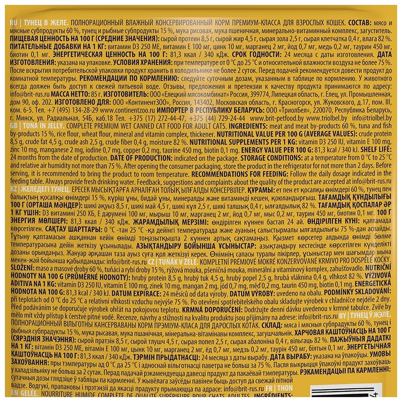 Brit Premium пауч для взрослых кошек тунец в желе 85 гр