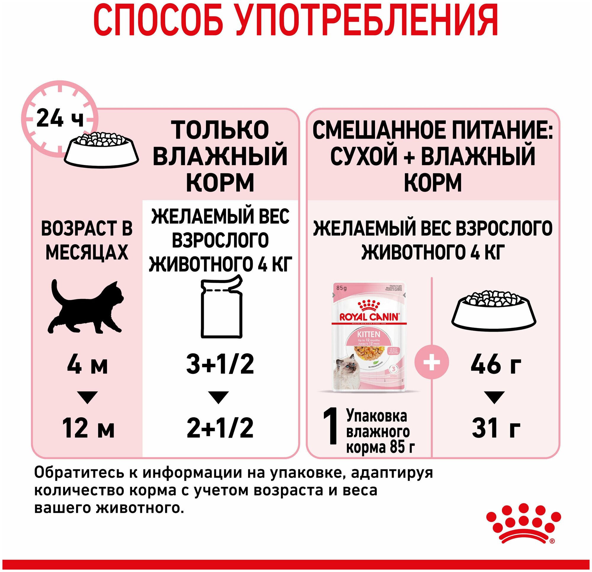 Royal Canin Kitten влажный корм для котят от 4 до 12 месяцев кусочки в желе 85 г