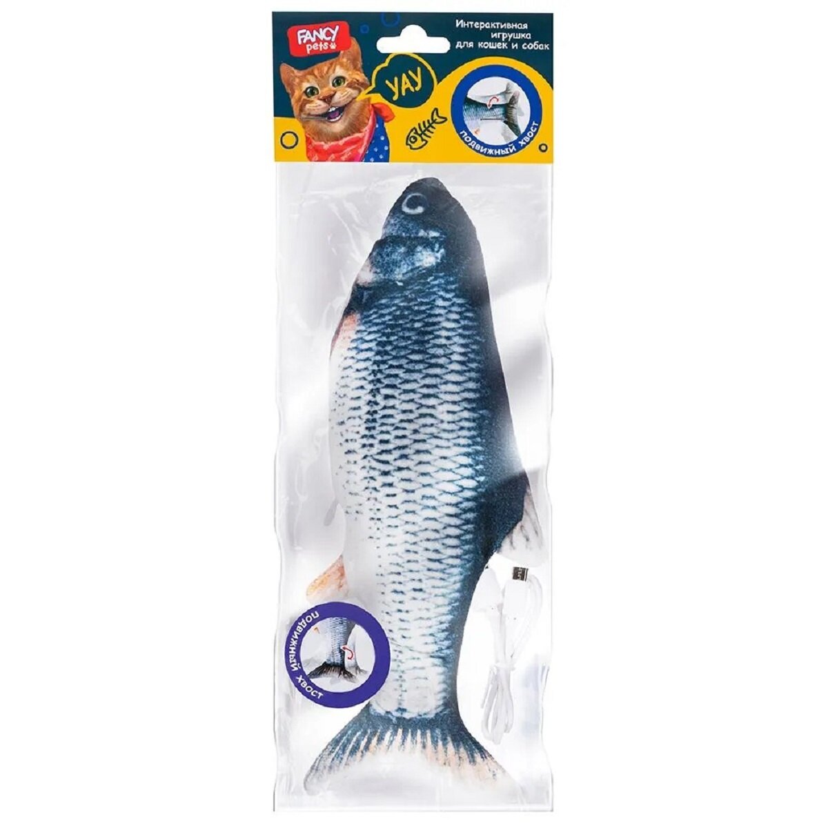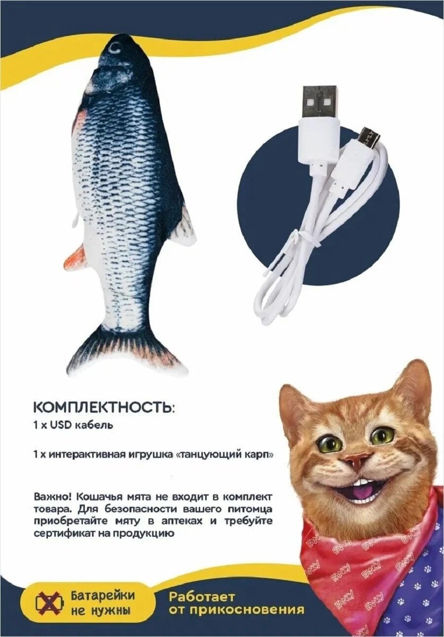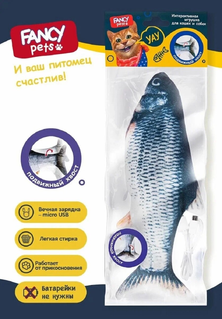 FANCY PETS 624 Игрушка для кошек "Карп" с дергающимся хвостом, 28см. Интерактивная рыба Fancy Pets с подвижным хвостом понравится вашему питомцу. Внутри игрушки находится модуль движения, расстегните замочек и включите его - рыбка начнет двигать хвостом, как живая! Танцующий карп выполнен из гипоаллергенных материалов, поэтому вам не придется переживать за здоровье и безопасность питомца. Вы можете спокойно идти по делам - рыба для котов будет развлекать любимца пока вас нет рядом. Если рыбка разрядилась, вам не нужно покупать батарейки - игрушка заряжается от USB-кабеля, который входит в комплект. Съемный чехол интерактивной игрушки для кошек и собак можно стирать при 30 С.Состав: Полимерные и текстильные материалы