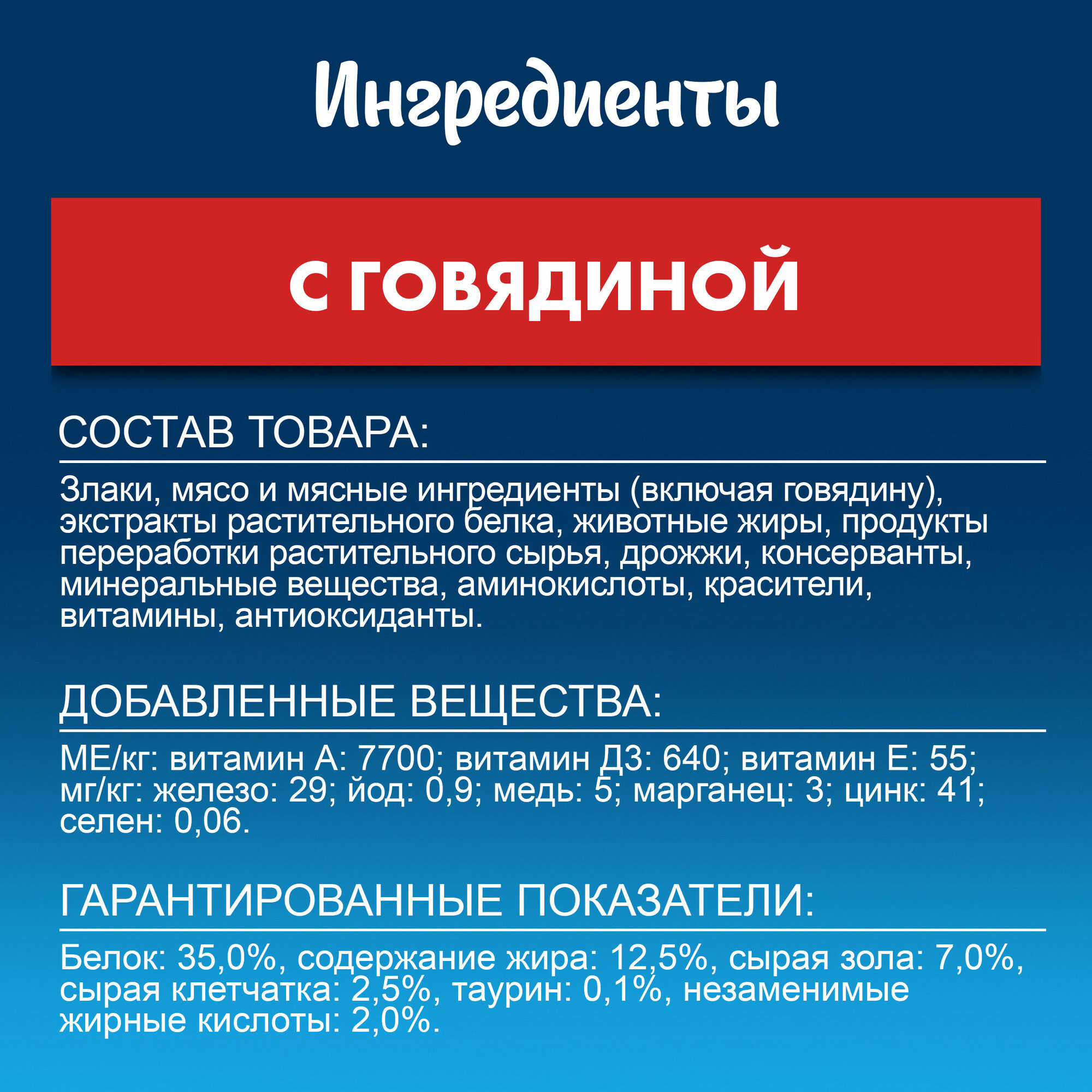 | Состав корма | Говядина |