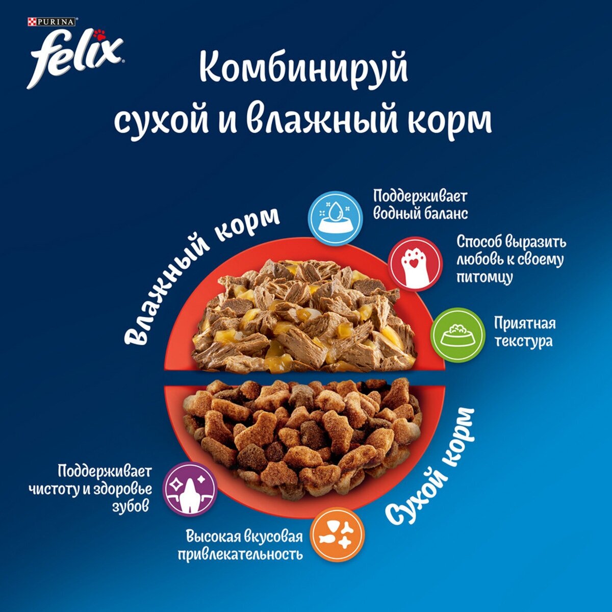 Для кошек с их охотничьими инстинктами нет ничего привлекательнее мясного вкуса и аромата. Эксперты Purina, разрабатывая сухие корма для домашних питомцев, создали корм для взрослых кошек Felix Мясное объедение — специально для Вашего любителя мяса.