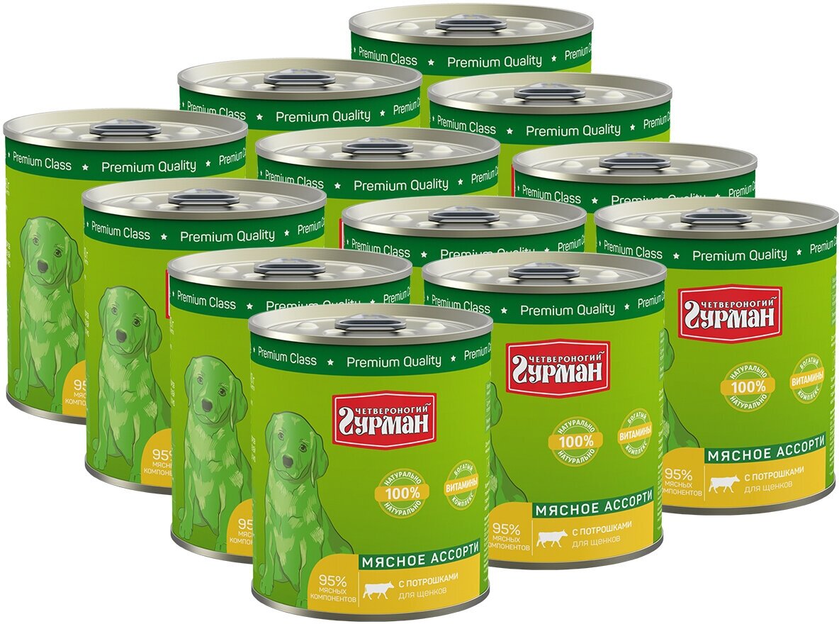 Четвероногий Гурман Консервы для щенков Мясное ассорти с потрошками 340 г