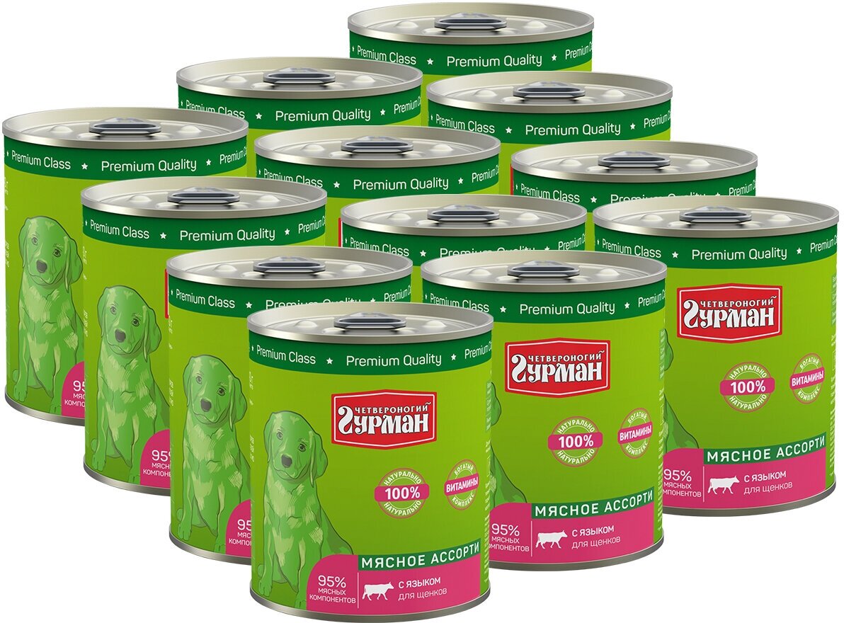 Четвероногий Гурман Консервы для щенков Мясное ассорти с языком 340 г