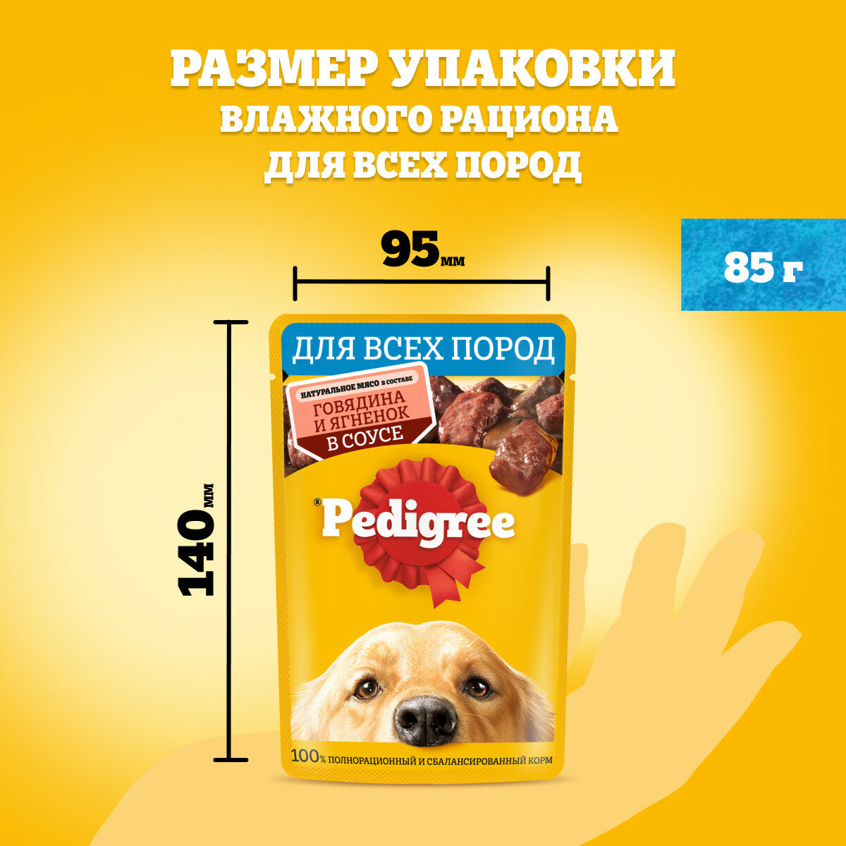Каждая собака будет рада мясной порции Pedigree Ведь это мясные кусочки, приготовленные без консервантов. В Pedigree оптимально сбалансированы все необходимые для собаки вещества: белки - для развития мышечной системы, полиненасыщенные жирные кислоты - для здоровой кожи и блестящей шерсти, антиоксиданты - для укрепления иммунитета, клетчатка - для здорового пищеварения