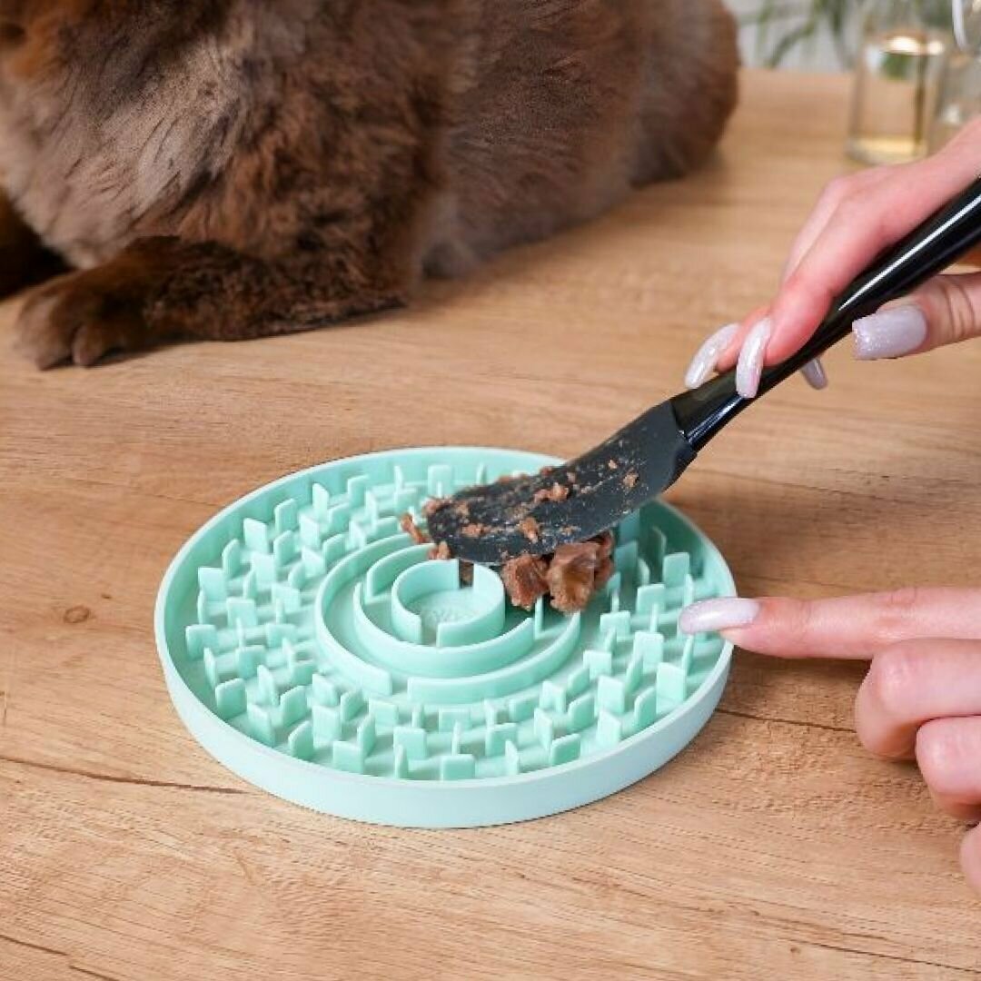 Отличное решение, чем отвлечь собаку. Распределяю паштет или консервы, замораживаю, и когда нужно даю собачке, занимает его минут на 40. Это не основное питание, даю типа как лакомство. Можно так же замораживать творог, йогурт.