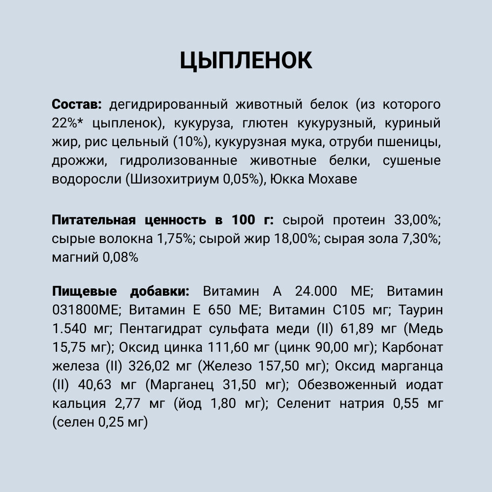| Состав корма | Курица |