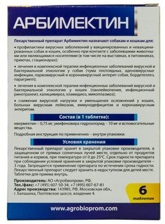 Pchelodar Арбимектин Таблетки для лечения инфекционных заболеваний вирусной и бактериальной этиологии у кошек и собак мелких пород 6 таблеток