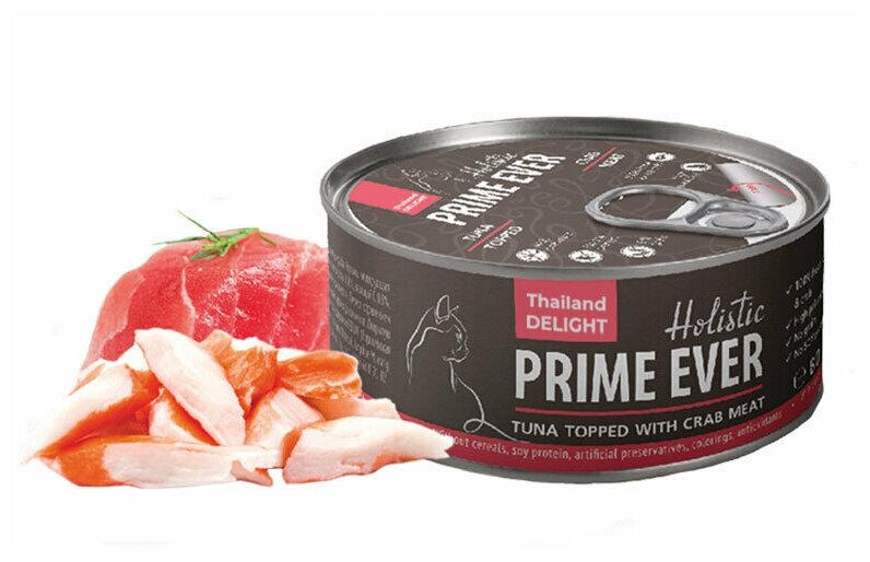 Prime Ever Консервы для кошек Тунец с крабом с желе 80 г