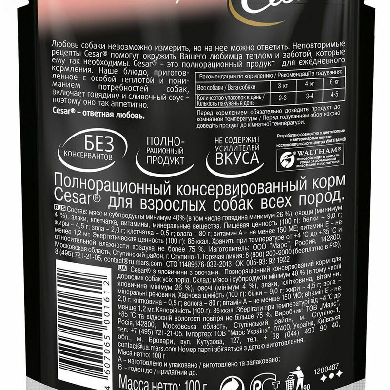 Влажный корм Cesar для взрослых собак, с говядиной в сливочном соусе, 85г