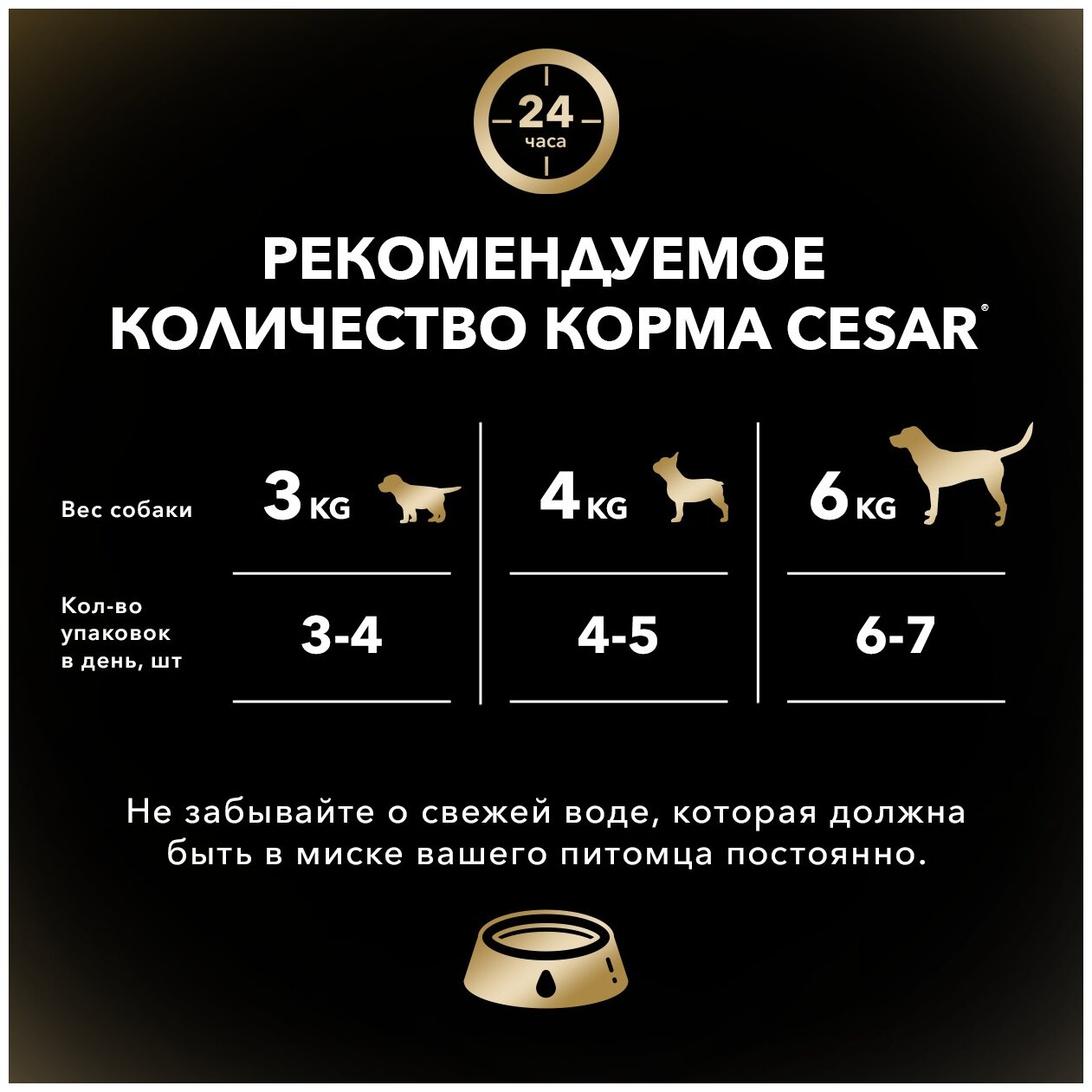 - Аппетитные блюда CESAR – это вкусные, сбалансированные рационы для собак, которые помогут окружить вашего любимца заботой и вниманием.