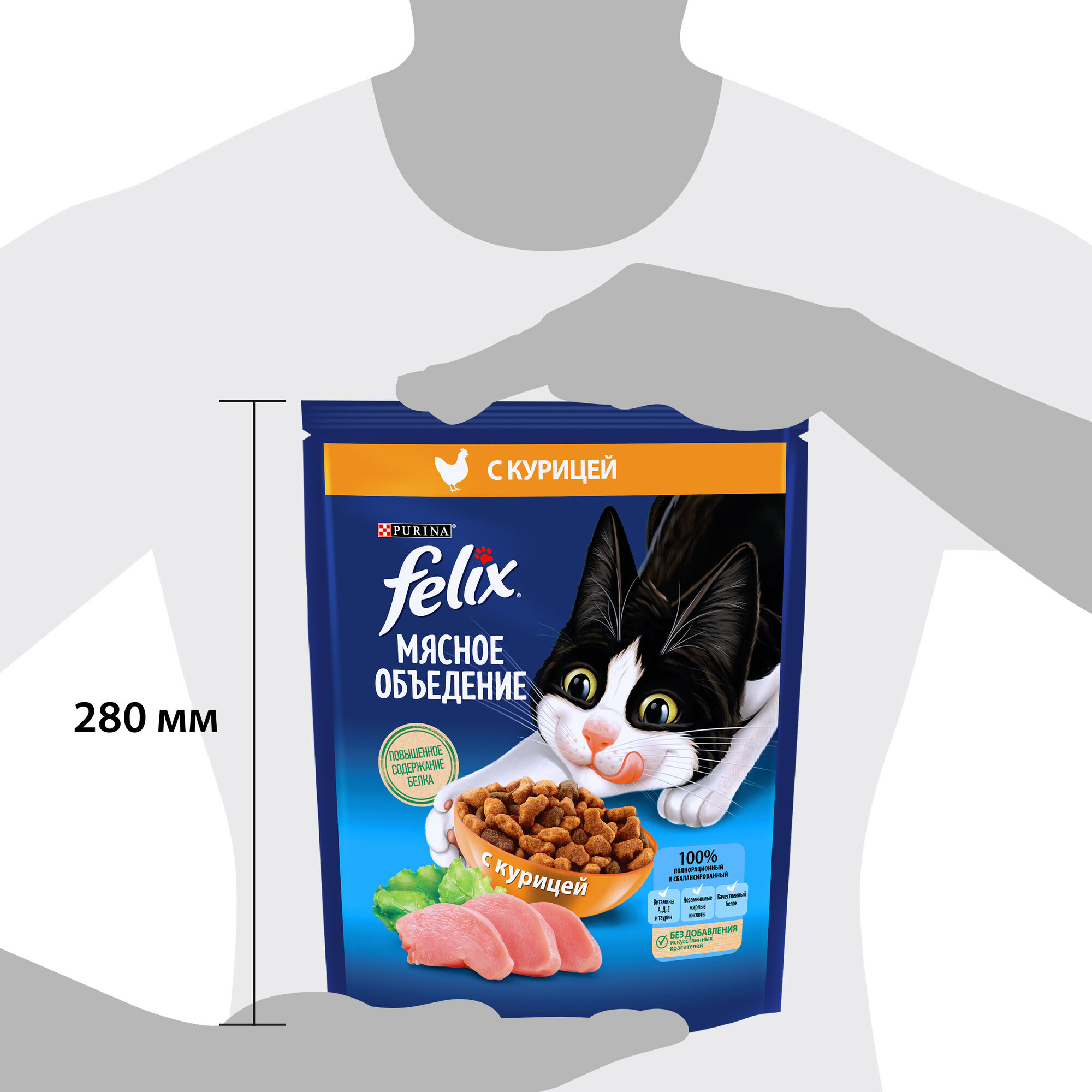 Корм для кошек сухой Felix Мясное объедение сочетает в себе все достоинства полноценного и полезного рациона. Сбалансированный состав, оптимальное сочетание белков, жиров и углеводов, содержание необходимых витаминов и минералов - вот, что выгодно отличает сухой кошачий корм от любого другого. Корм Felix Мясное объедение - это микс хрустящих гранул естественной формы с повышенным содержанием белка, созданный чтобы побаловать Вашего кота всей полнотой мясного вкуса, которую он заслуживает. Ваш пушистый озорник полюбит яркий вкус корма Felix Мясное объедение, ведь он изготовлен без добавления искусственных красителей, ароматизаторов и консервантов! Ваш любимец также оценит сочетание мясных ингредиентов и овощей, ведь кошки так любят разнообразие в питании. Корм Felix Мясное объедение содержит оптимальное сочетание сбалансированных минеральных веществ и витаминов. Он на 100% удовлетворяет ежедневные потребности Вашего питомца в правильном питании. Важно, что питомцы обожают его и с удовольствием грызут хрустящие гранулы. Но главное, отныне вы можете быть спокойны за здоровье вашего питомца - производитель тщательно продумал состав с учетом особенностей организма животных и создал высококачественный корм для кошек. Преимущества: - 100% полнорационный и сбалансированный корм. . - Повышенное содержание белка. . - Источник незаменимых жирных кислот, витаминов и таурина. . - Без добавления искусственных красителей. . Рекомендации по кормлению: - Рекомендуемая суточная норма зависит от погодных условий, уровня активности кошки и ее физических особенностей. . - Индивидуальные потребности кошки могут варьироваться, и ежедневное количество корма должно быть скорректировано по мере необходимости для поддержания оптимального веса Вашей кошки. . - Следите, чтобы у Вашей кошки всегда была чистая свежая питьевая вода. . Ингредиенты: злаки, экстракты растительного белка, мясо и мясные ингредиенты (включая курицу), животные жиры, продукты переработки растительного сырья, дрожжи, минеральные вещества, аминокислоты, консерванты, красители, витамины, антиоксиданты. Отличная физическая форма, крепкие зубы и кости, блестящая шерстка и игривое настроение - вот, что обеспечивает кошачья еда Felix Мясное объедение для ежедневного кормления. Питание для кошек / зоотовары для кошек / корм для ежедневного кормления / кормы для кошек.
