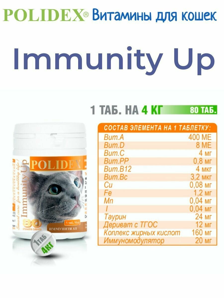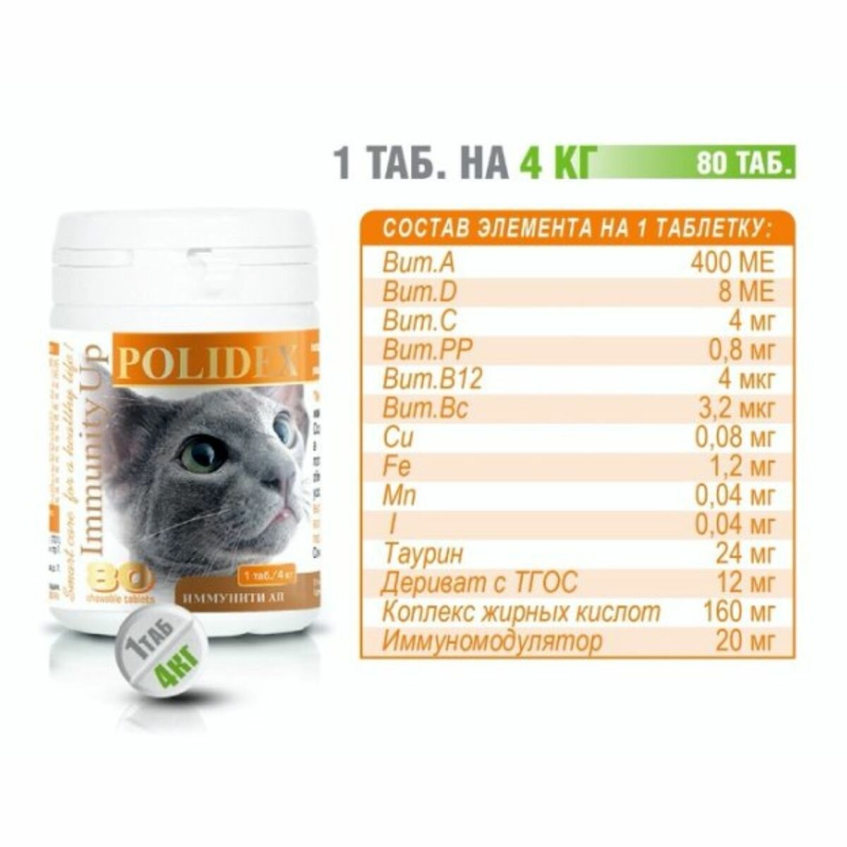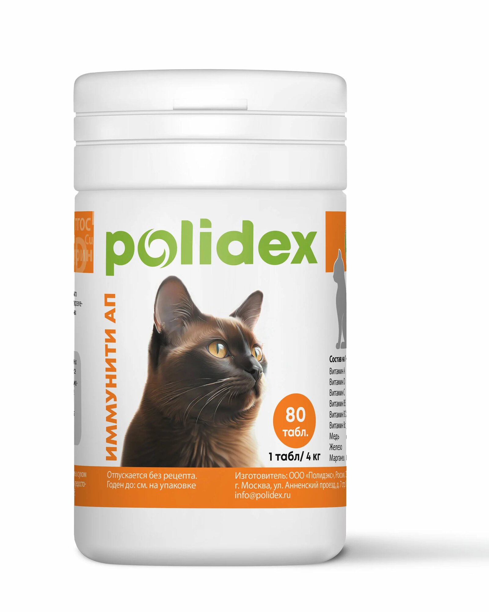 Polidex Полидекс Иммунити Ап Таблетки для урепления иммунитета у кошек 80 таблеток
