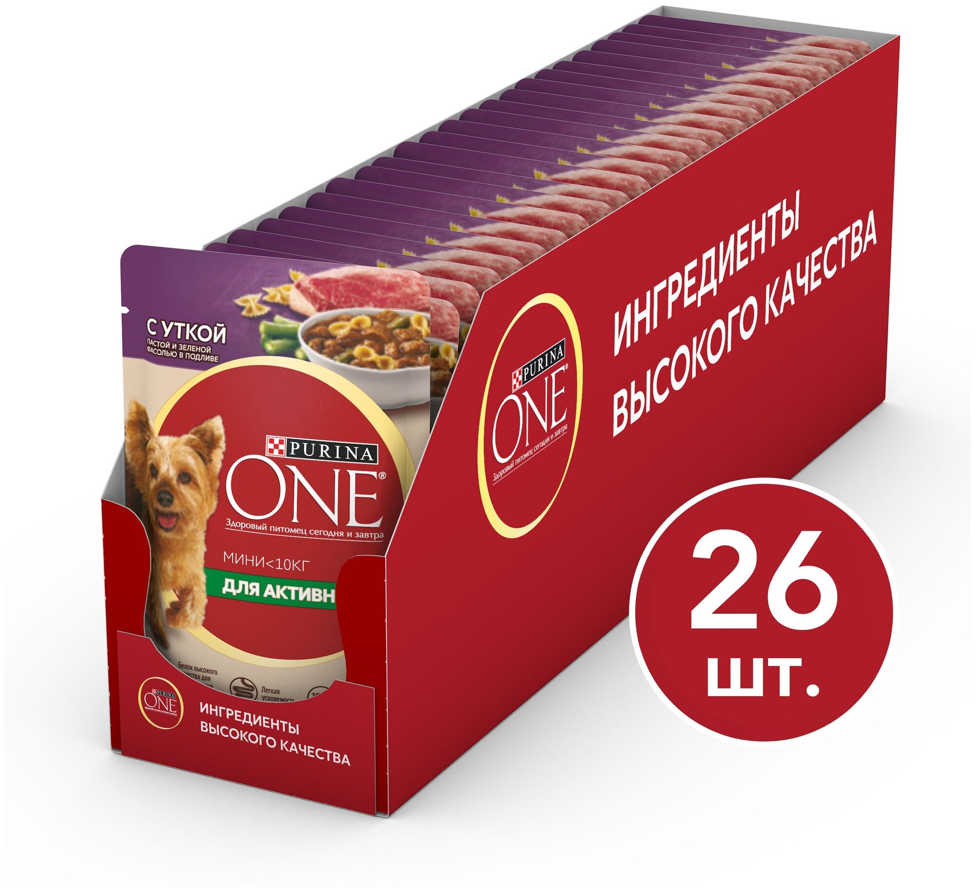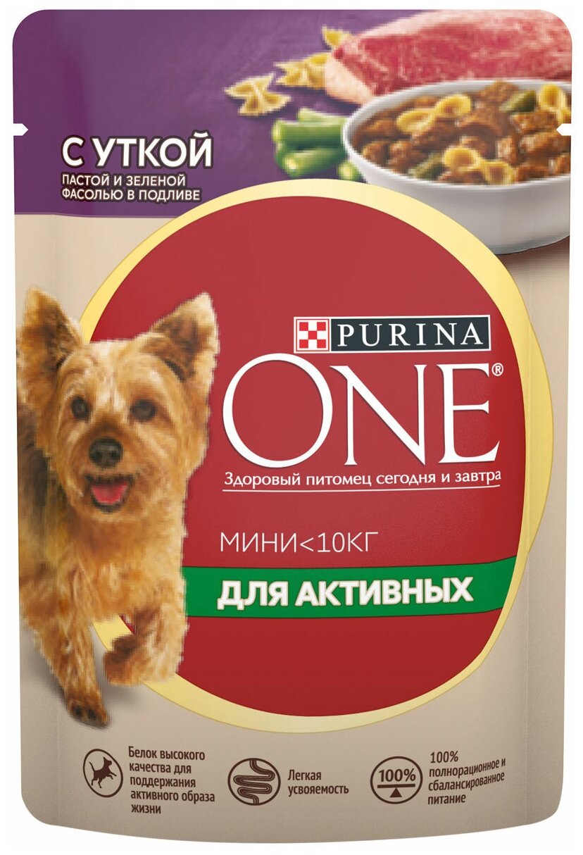 Purina One Влажный корм для собак мелких мелких пород с уткой пастой и зеленой фасолью в подливе 85 г