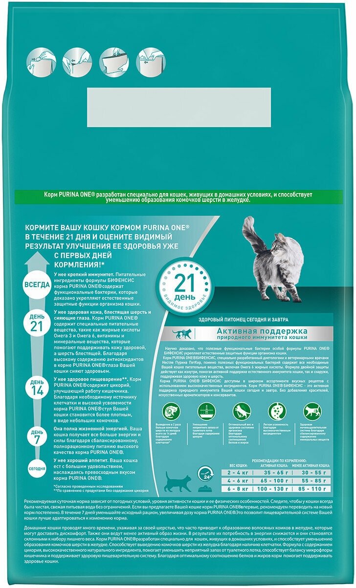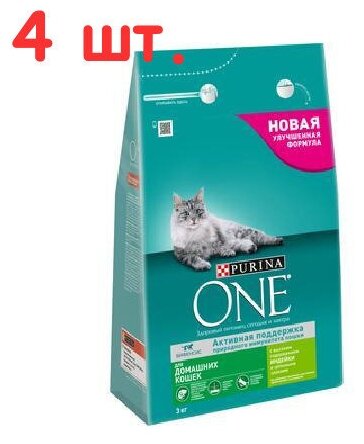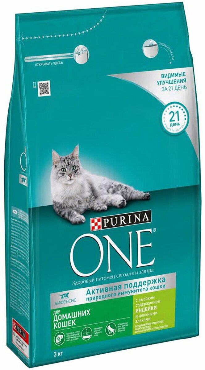 Purina One Сухой корм для домашних кошек с индейкой и злаками 3 кг
