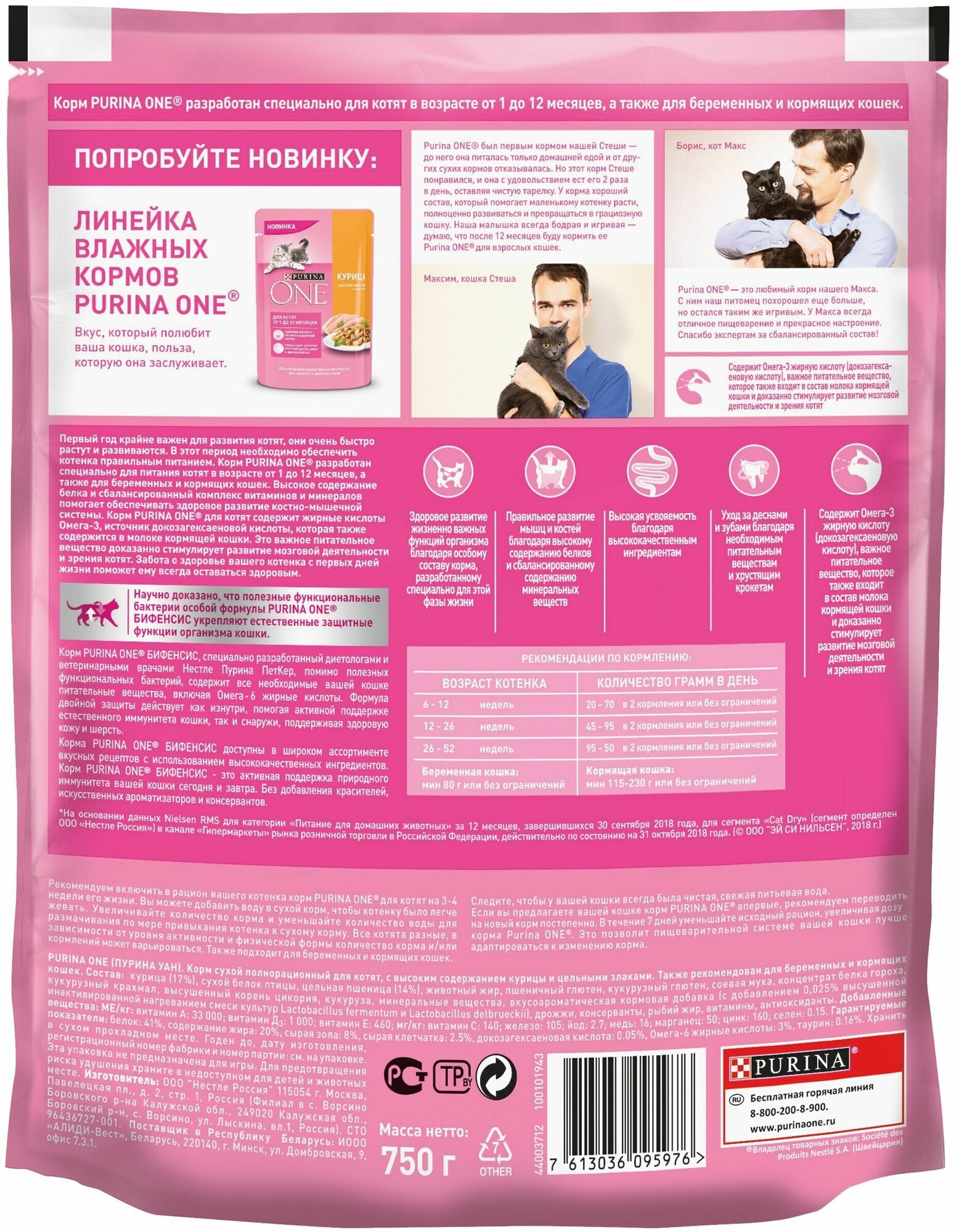 Purina One Сухой корм для котят с курицей и злаками 750 г