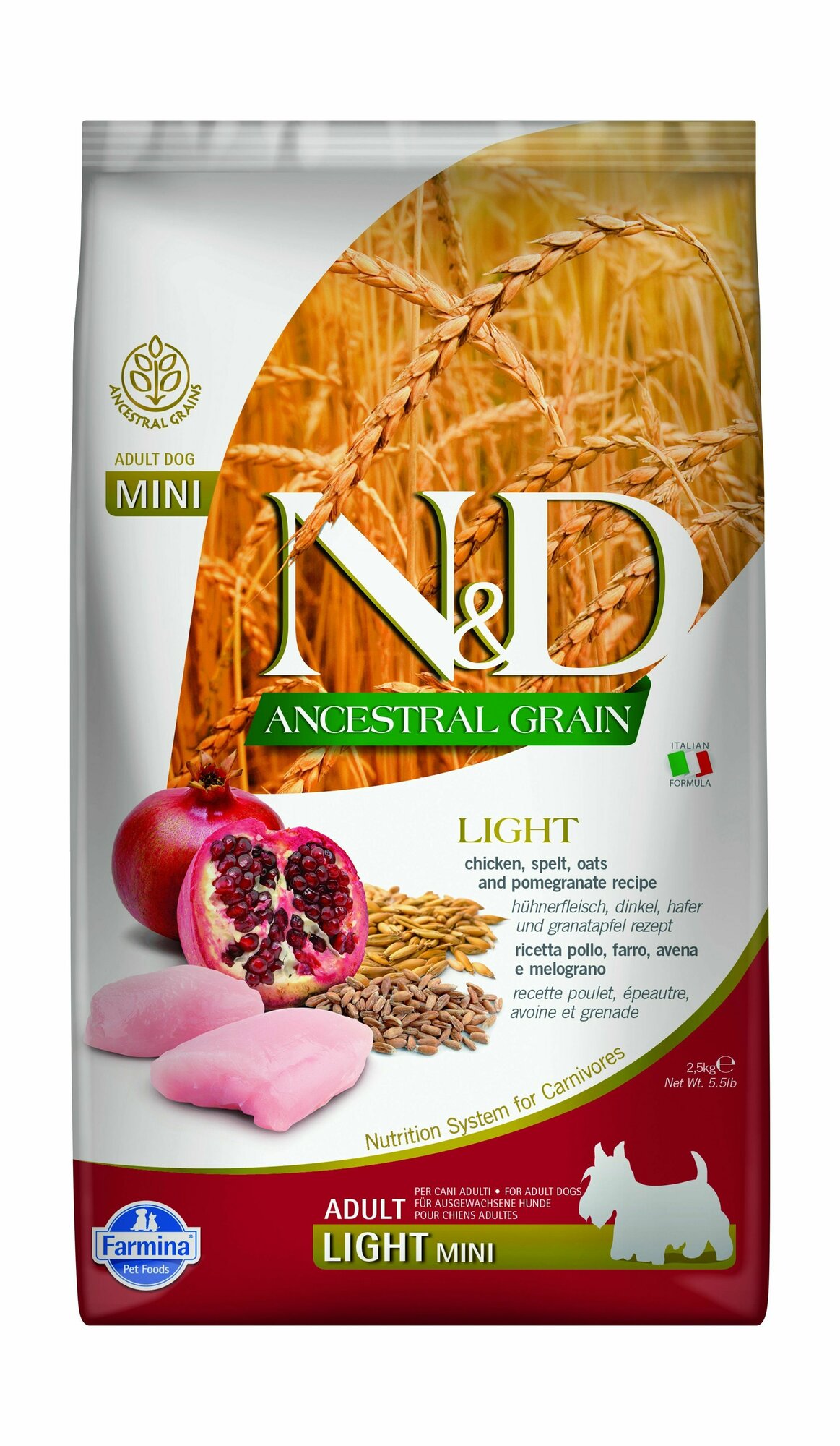Farmina Mini Light низкозерновой сухой корм для взрослых собак мелких пород с курицей спельтой овсом и гранатом 25кг