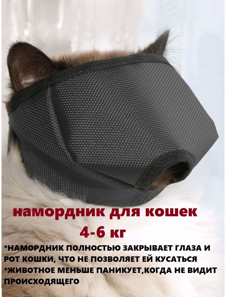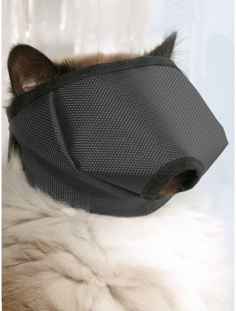 Намордник для кошек изготовлен из прочной гладкой ткани. Застегивается сзади на липучку, имеет отверстие для носа, закрывает глаза. Чистка намордника: при загрязнении сполоснуть водой и/или протереть влажной губкой. Размер S - для кошек от 0 до 4 кг.