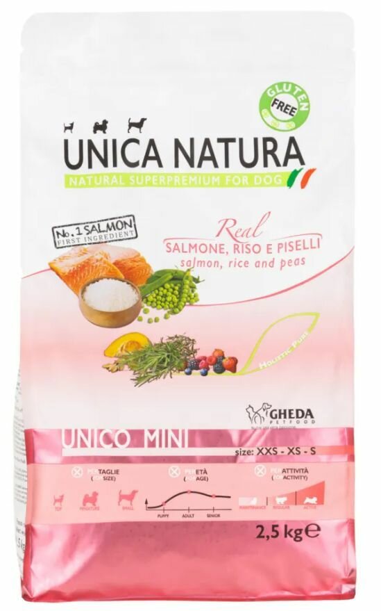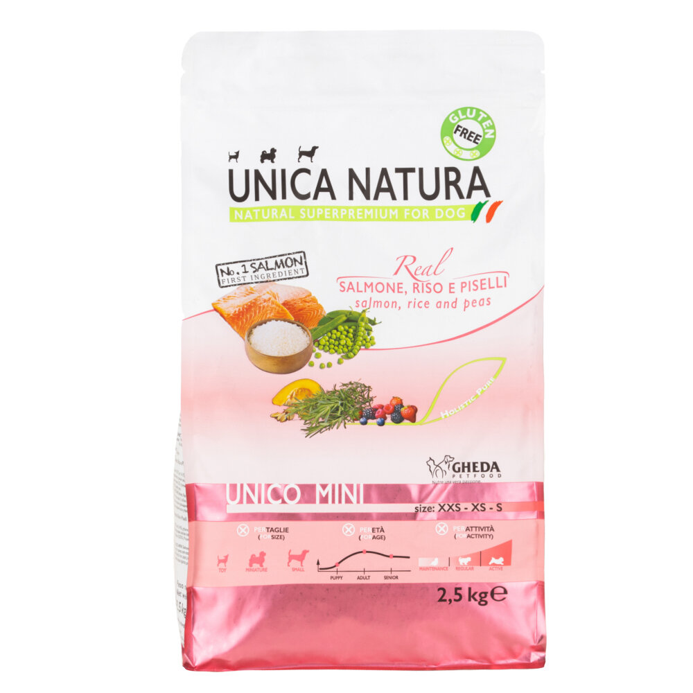 Unica Natura Сухой корм для собак мелких пород с лососем рисом и горохом 25 кг