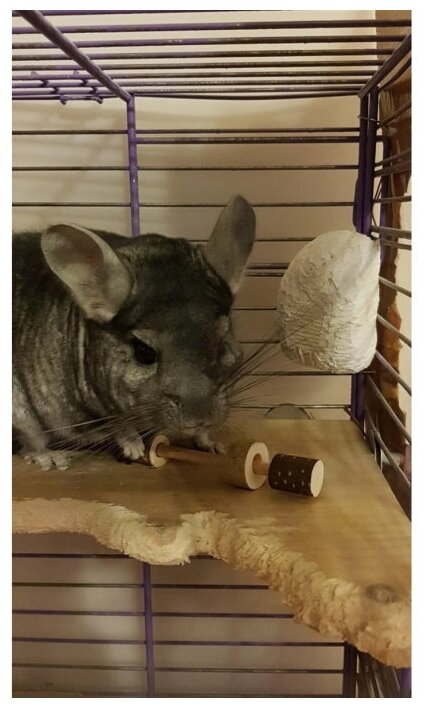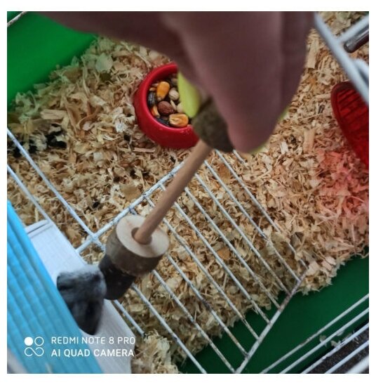 Зоо-аксессуар для грызунов – гантелька из орешника. Конечно, помимо того, что её нужно грызть (девайс специально адаптирован под устройство и особенности челюстного аппарата грызуна), она играет роль своеобразной мебели в клетке. Чтобы не было уныло и пустынно, помимо прочих интересных вещей добавьте эту гантельку – она никогда не будет лишней. Небольшое колёсико посередине шеста – интеллектуальный челлендж для Вашего питомца – сумеет ли он разгадать загадку игрушки? Она небольшая, всего 10 см, полностью из дерева и в принципе послужит забавной развлекушкой для питомца.