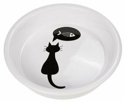 Миска для кошек и собак керамическая, белая с рисунком на дне миски, диаметр 13 см, объем 150 мл.