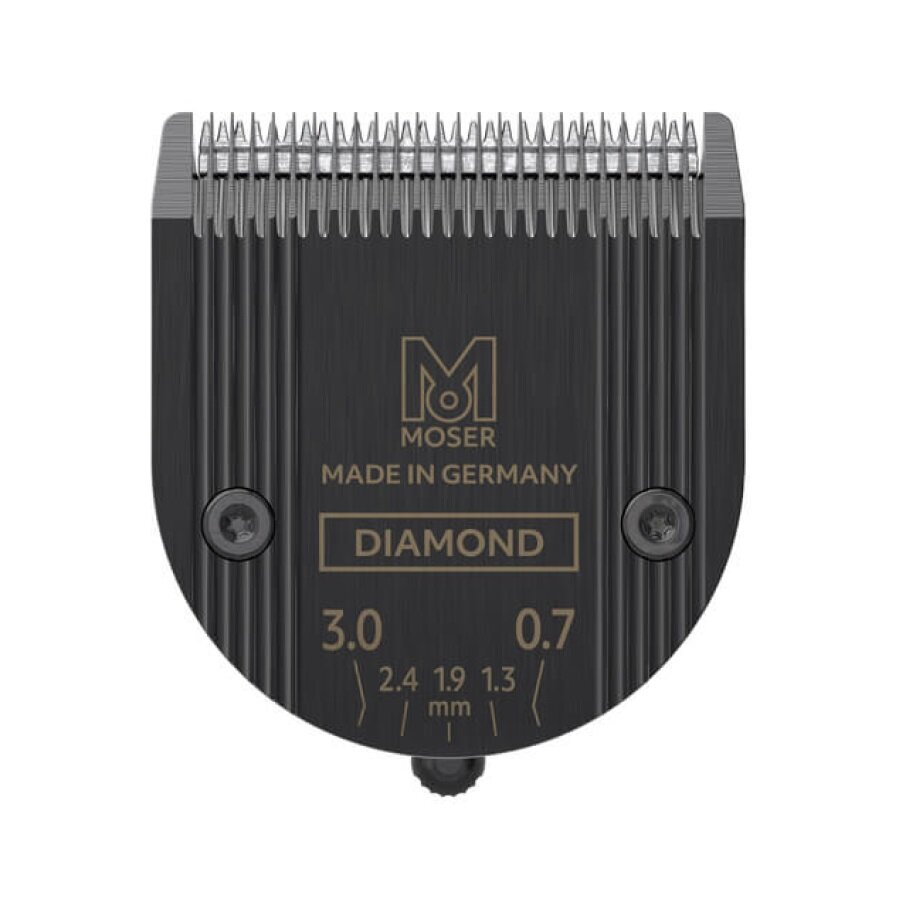 Ножевой блок Moser Diamond Blade 1854-7023 входит в стандартную комплектацию машинок Moser Chrom2Style 1877-0050, Li+ Pro2 1888-005, Wahl Beretto. Нож регулируемый, доступны 5 положений: 0.7, 1.3, 1.9, 2.4 и 3 мм.Покрытие DLC (Diamond Like Carbon)Инновационное углеродное покрытие с характеристиками алмазной твердости дает меньшее трение, за счет которого ножевой блок медленнее нагревается. Повышенная твердость увеличивает прочность и износостойкость верхнего лезвия до 40 раз.Повышенные твердость и устойчивость к нагреву делают нож наиболее удобным для работы на потоке, когда одна стрижка сразу сменяется другой.Защите от загрязненийЭлементы режущего комплекта защищены от попадания остриженных волос внутрь и повышают удобство ухода и очистки.Технология Cool Touch«Гармошка» — борозды — на нижнем ноже увеличивают отдачу тепла и ножевой блок дольше остается холодным, лучше скользит по поверхности. Канавки интенсивнее рассеивают за счет увеличенной площади.Список совместимых моделей:Moser ChromStyle Pro 1871-0081Moser Chrom2Style 1877-0050Moser Chrom2Style Blending Edition 1877-0052Moser Kuno 1887-0050Moser Li+ Pro2 1888-0051Moser Li+ Pro Rose Gold Edition 1884 0055Moser Li+ Pro 1884-0056Moser Neo Black 1886-0051Moser Genio Pro 1874-0050Moser Motion 1885-0050Wahl Beretto ProLithium 4212-0470