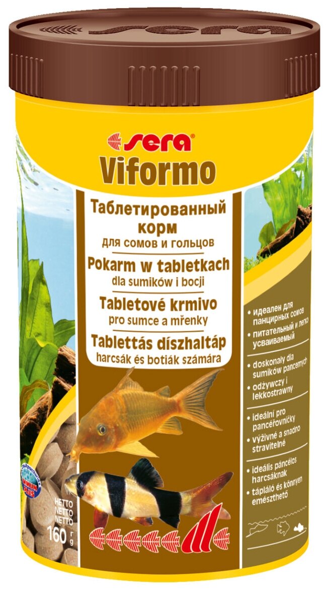 Корм для сомов и вьюновых рыб SERA Viformo изготовлен в виде легкоусвояемых таблеток с повышенным содержанием растительного сырья. Его состав разработан специально с учетом физиологических потребностей гольцов и сомов, поэтому такая добавка позволит рыбкам оставаться здоровыми и активными.