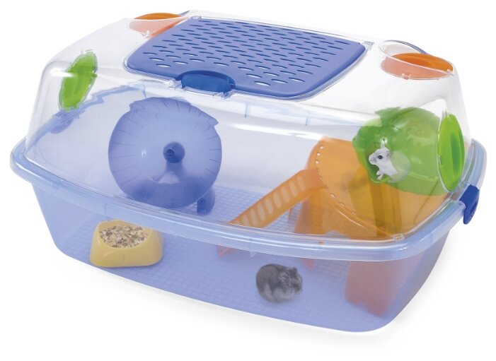 О товареПростая и легкая клетка Imac Yo-YoPlus полностью изготовлена из прозрачного пластика, за которым Вашим питомцам будет уютно, а Вам - удобно наблюдать за пушистыми малышами. Благодаря особой конструкции, такая клетка-ёмкость очень функциональна для маленьких зверьков (хомячков, мышей). В комплекте предусмотрено всё необходимое для жизни и активного времяпрепровождения.При установке клетки обязательно убедитесь, что Ваш питомец не будет подвержен прямому солнечному свету и сквознякам.Установите домик в таком месте, чтобы зверёк чувствовал себя в нём спокойно и защищённо. Кормушку и поилку расположите в легкодоступных местах, чтобы Вам было удобно добавлять сено, корм и воду. В Ваше отсутствие клетку с питомцем следует держать закрытой, чтобы зверёк не выпал и не повредил себя, а также не стал жертвой других домашних животных. Перед первым использованием ополосните под тёплой водой все детали клетки. Высококачественный пластик, из которого изготовлены товары Imac, прекрасно отмывается от загрязнений в тёплой воде с мылом или мягким моющим средством. Цвет: прозрачная синяя. Размер: 54 (длина) х 39 (ширина) х 27 (высота) см.В комплекте: Клетка пластиковый помост домик колесо миска.