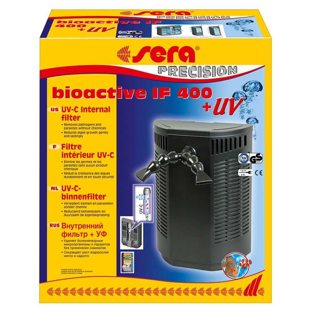 Sera Bioactive If400 + УФ - внутренний фильтр с широким спектром применения и устройством сбора пены подойдет как для пресноводных, так и для морских аквариумов. оснащен механической помпой FP 750 и УФ стерилизатором, для уменьшение болезнетворных бактерий, водорослей и паразитов.