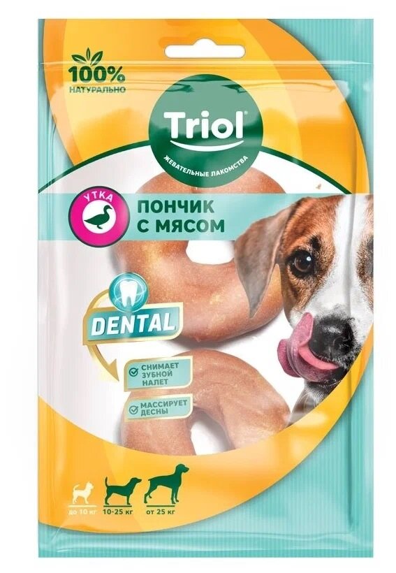 Сервис сравнения цен СкидкаГИД предлагает сравнить цены на товар «Triol Пончики жевательные DENTAL с мясом утки 75см 70-80г (уп 2шт)»