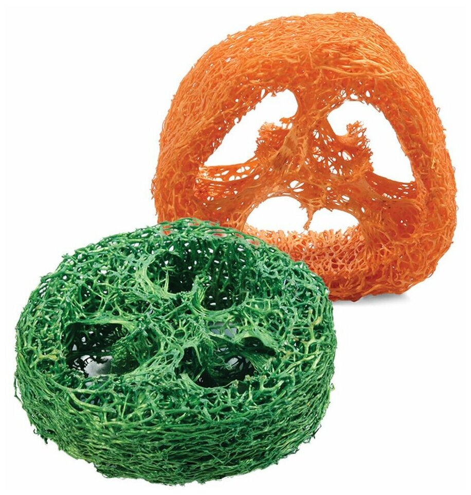 Игрушка для мелких животных из люфы "Ломтики". Во время игры происходит мягкая механическая очистка зубных поверхностей, поскольку крупноволокнистая структура игрушек идеально подходит для снятия зубного налета. При регулярном использовании они позволяют поддерживать здоровье полости рта питомца. Игрушка изготовлена из натурального материала - люфы, растения из семейства тыквенных, а, значит, абсолютно безопасна для вашего питомца. Цвет: оранжевый и зеленый. Размер: d50*h20мм