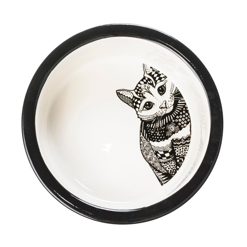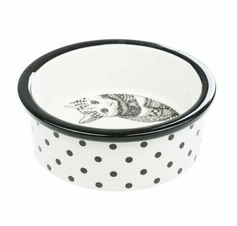 Petmax Миска для кошек керамическая 0,3л 12см белый/черный