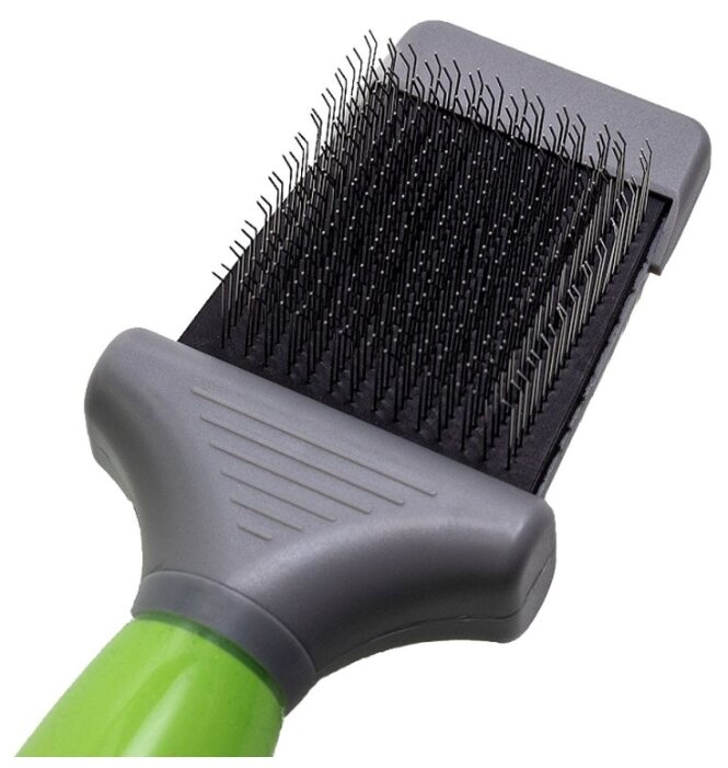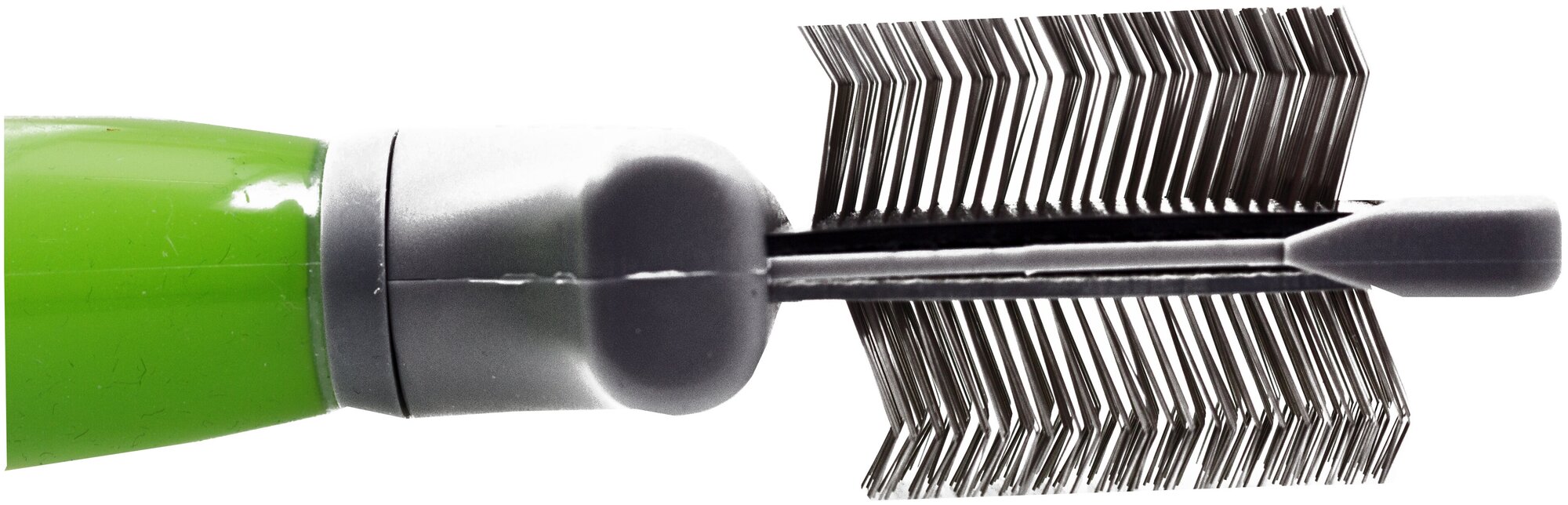 Пуходерка Moser двухсторонняя с силиконовой ручкой - это инструмент "два в одном". Черная часть пуходерки служит для удаления, разбора колтунов на длинной и спутанной шерсти. Серую часть оптимально использовать для короткой или не слишком густой шерсти, а также вычесывать шерсть в деликатных местах у морды и на лапах. Высота зубцов - 1.8мм.
