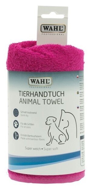 Полотенце Wahl - универсальное полотенце для шерсти и лап домашних животных. Полотенце Wahl особенности: Прекрасно впитывает влагу; Изготовлено из бамбука и хлопка; Размер: 610 х 610 мм. Уход за изделием: Стирка, при температуре воды не выше 60 градусов в режиме деликатной стирки, без сильных моющих средств, без кондиционера для белья.