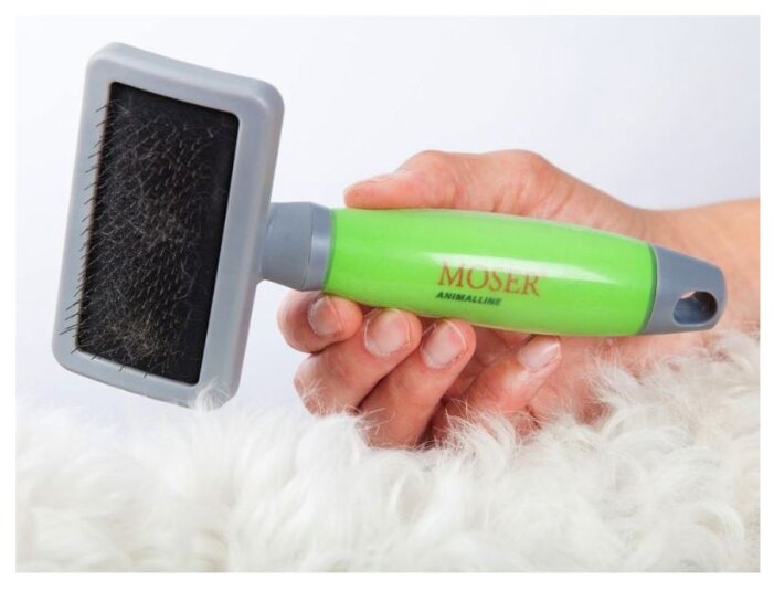 Большая пуходерка Moser Large Slicker Brush для собак крупных пород. Предназначена для расчесывания и удаления нежелательного подшерстка и спутавшейся шерсти.