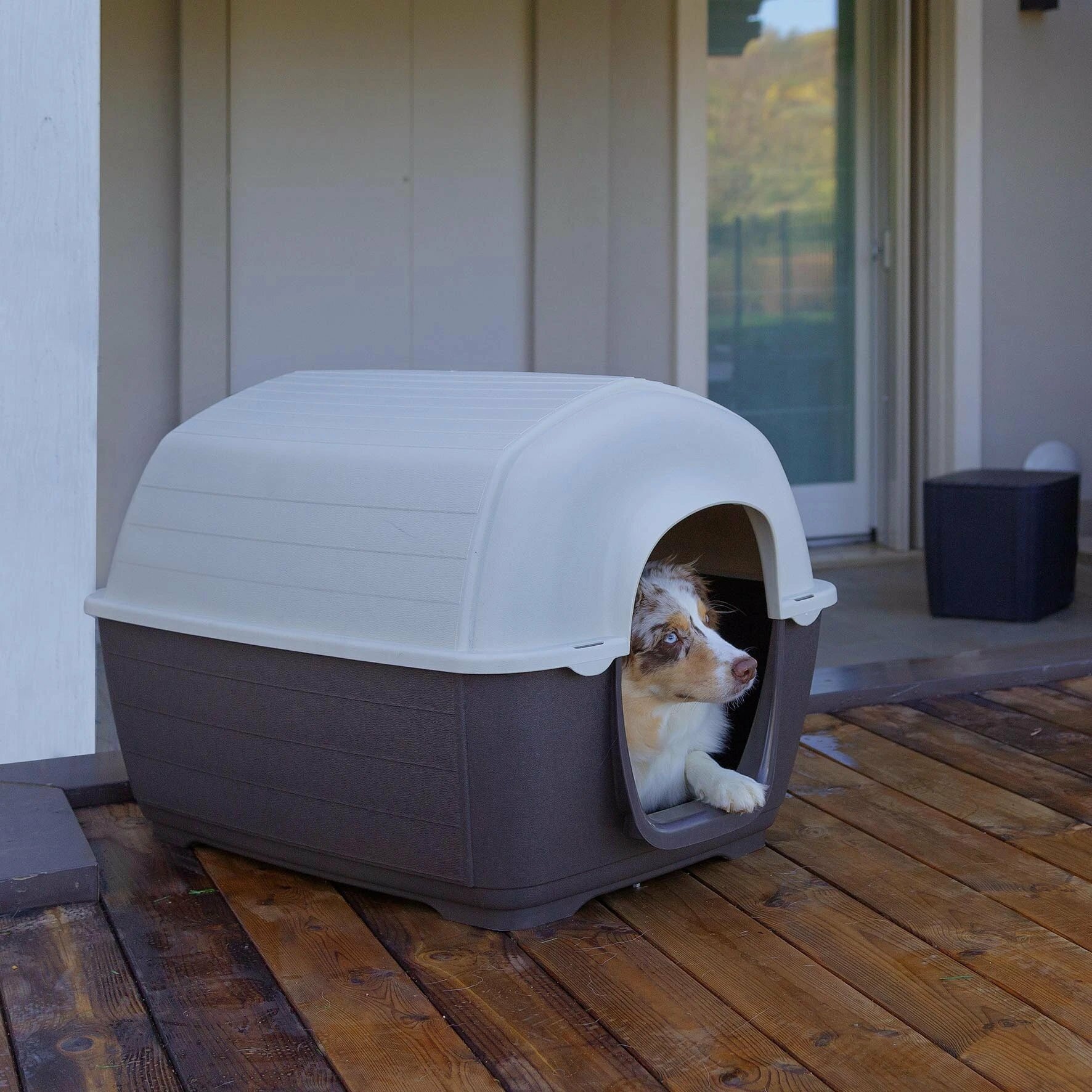 Вентиляционная система для максимальной циркуляции воздуха внутри Система стока воды для избежания скопления влаги Будка хорошо изолирована от земли, благодаря специальному пластиковому основанию Легкая уборка благодаря разборной конструкции экологичность: продукт изготовлена из переработанного пластика Пять размеров для собак всех пород Линейка аксессуаров - х/б подушка и пластиковая дверка Внутренние размеры (Д = длина, Г = глубина, В = максимальная внутренняя высота): KENNY MINI: L 37 x W 59 x H 37 cm KENNY 01: L 47 x W 70 x H 47 cm KENNY 03: L 56 x W 82 x H 56 cm KENNY 05: L 66 x W 90 x H 66 cm KENNY 07: L 75 x W 97 x H 75 cmKenny - пластиковая будка для собак для использования на улице в форме иглу, обеспечивает отличную изоляцию при высокой и низкой температуре. Kenny изготовлена из прочного пластика и отличается эффективной вентиляционной системой, а также системой стока воды для обеспечения сухой среды. Будка имеет большое отверстие для входа и основание определённой формы, обеспечивающее прекрасную изоляцию от земли. В линейке будок Kenny вы обязательно найдете подходящую вам модель. У вас маленькая собачка или собака средних и больших размеров? Выберите будку из пяти размеров, начиная от 66 см до 112 см длиной. Будку легко и удобно убирать! Kenny состоит из двух частей: поддона и крыши, которые соединяются с помощью крючка. В качестве дополнительного аксессуара вы можете приобрести подушку из х/б ткани и пластиковую дверку. Kenny – это экологически устойчивый продукт: в своем производстве он использует переработанные материалы, тем самым защищая окружающую среду, в которой мы живем с нашими друзьями-животными.
