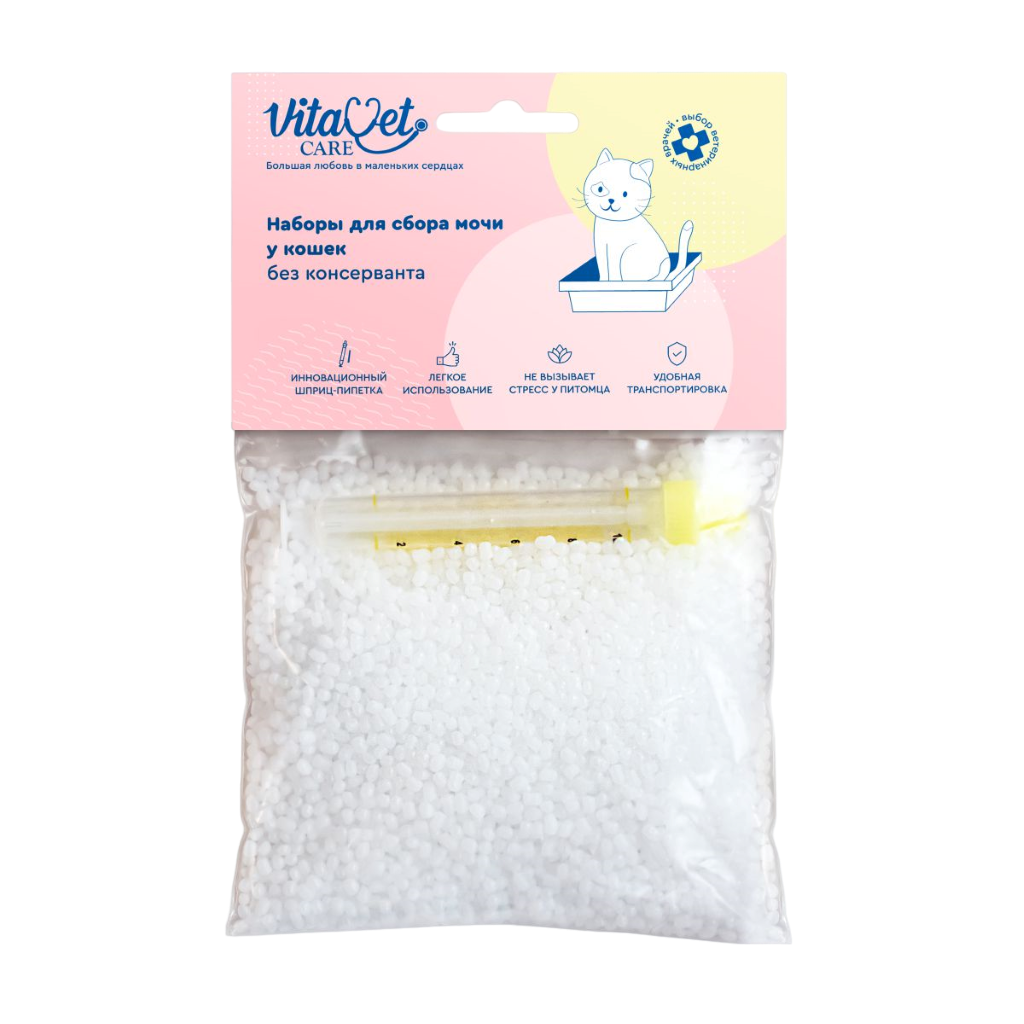 Набор для сбора мочи VitaVet CARE для кошек с пластиковыми гранулами поможет неинвазивно, комфортно и с легкостью осуществить сбор мочи вашего питомца для дальнейшей транспортировки и исследований. Пластиковые гранулы имитируют наполнитель, поэтому ваш питомец не испытывает дискомфорта при мочеиспускании. Неабсорбирующие влагу гранулы абсолютно безопасны для Вас и Вашего питомца, так как выполнены из экологичных и биоразлагаемых материалов. Ассоциация ветеринарных врачей России рекомендует проводить профилактическое исследование анализа мочи здоровым питомцам каждые 6 месяцев, из-за частой встречаемости проблем с мочекаменной болезни и циститов у кошек. Животным, которые имеют патологии мочевыделительной системы анализ мочи необходимо проводить чаще, в соответствии с рекомендациями лечащего врача.
