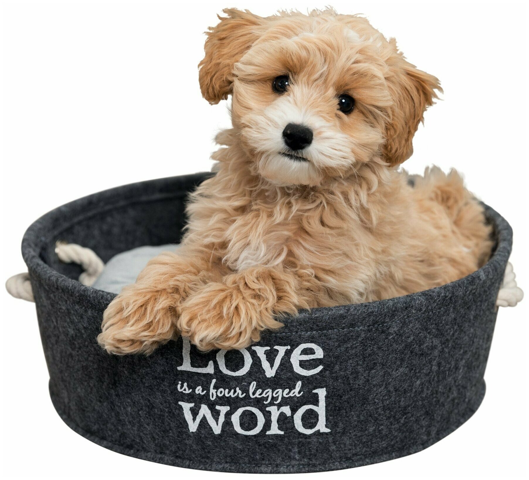 Лежак для кошек и собак Lian, серый, круглый, фетр/плюш, с декоративной надписью. Мягкий лежак понравится любому питомцу, подойдет как для кошек, так и для собак мелких пород.