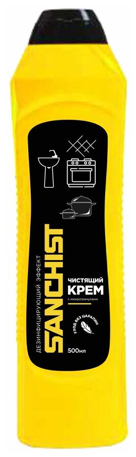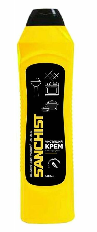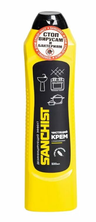 Благодаря щадящему природному сырью SANCHIST «Чистящий крем» подходит для эффективного и безопасного очищения стеклокерамических и хромирован-ных поверхностей на кухне и в ванной комнате.SANCHIST «Чистящий крем» не повреждает поверхность, защищает от микробов и оставляет приятный аромат после использования. Щелочь и ПАВ позволяют справиться с загрязнениями и жиром. Подходит для чистки ванн, раковин, сантехники, стеклокерамических варочных поверхностей, духовых шкафов, микроволновых печей и всех видов хромированных поверхностей, в том числе кастрюль и сковородок.Может использоваться в лечебно-профилактических, санаторно-курортных, детских, дошкольных, школьных и других аналогичных учреждениях.