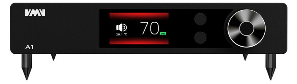 Усилители класса А ценятся среди опытных меломанов за натуральный и сбалансированный звук, а также отсутствие слышимых искажений. Это достигается за счет того, что выходные транзисторы в таком усилителе работают в линейном режиме, пропуская весь звуковой сигнал. Для этого транзистор должен быть постоянно «открыт» и через него все время протекает ток, что и приводит к значительному нагреву. В модели SMSL VMV A1 на выходе установлены полевые транзисторы, управляющиеся напряжением, что позволило заметно снизить их рабочий ток (и нагрев) без ухудшения основных характеристик. На дисплей усилителя выводится значение температуры его выходных каскадов. Для усилителей класса А оптимальное качество звука достигается при выходе на определенный температурный режим и ее значение меломан сможет контролировать.
