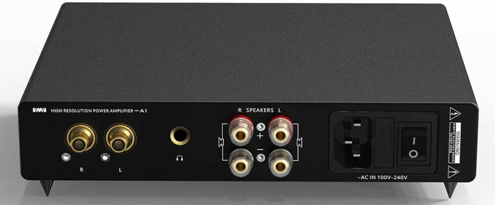 Аппарат развивает выходную мощность 10 Вт на канал при сопротивлении нагрузки 8 Ом, что является очень хорошим показателем для такой компактной модели, работающей в классе А. Усилитель легко справится с полочной акустикой популярных марок и полноценно озвучит комнату средних размеров. SMSL VMV A1 оснащен и выходом на наушники.