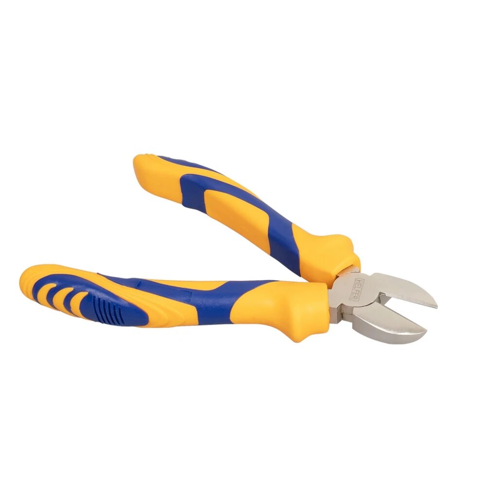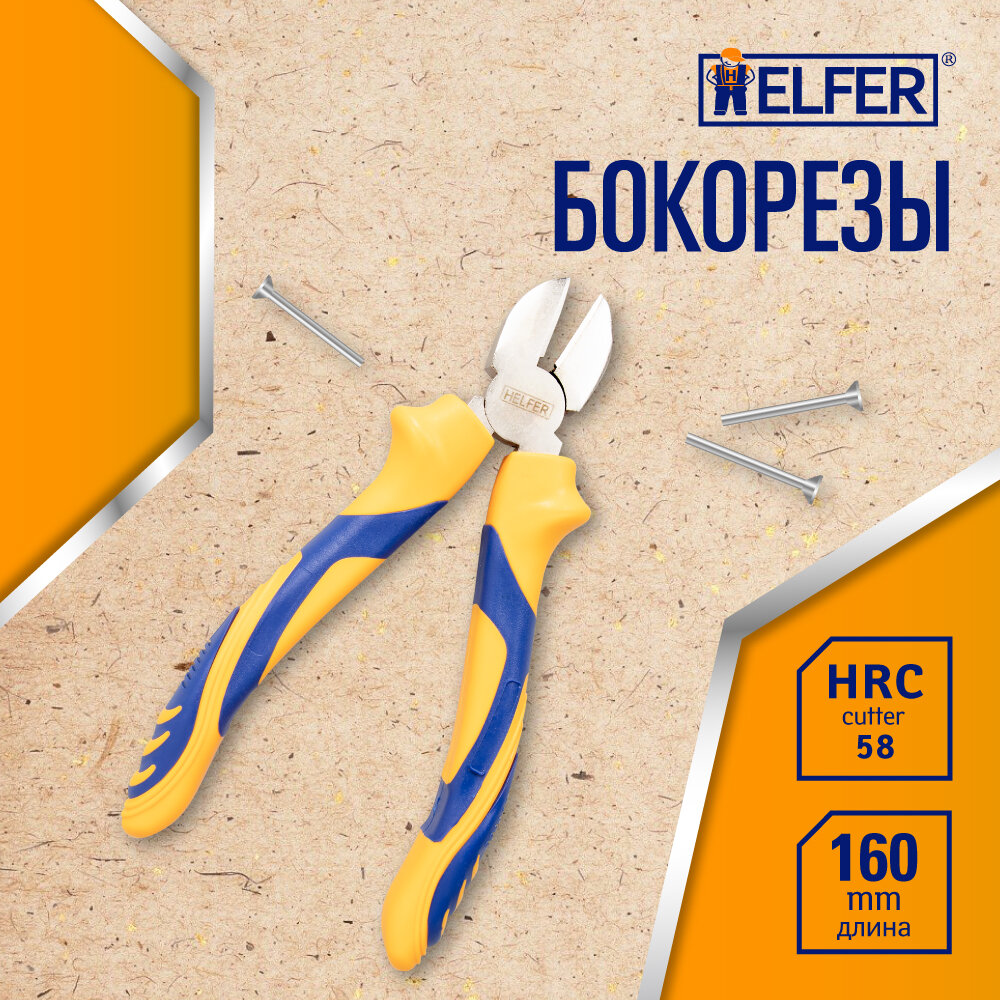 Бокорезы 160мм. Шарнирно-губцевый инструмент HELFER предназначен для широкого спектра работ. Изделия изготовлены из высокоуглеродистой стали, при этом ее твердость в зажимных частях инструмента составляет 46HRC, а на режущих кромках - 58 HRC, что обеспечивает надежность и долгий срок службы инструмента. Двухкомпонентные рукоятки из маслобензостойкого пластика гарантируют удобство и практичность для всех видов работ.