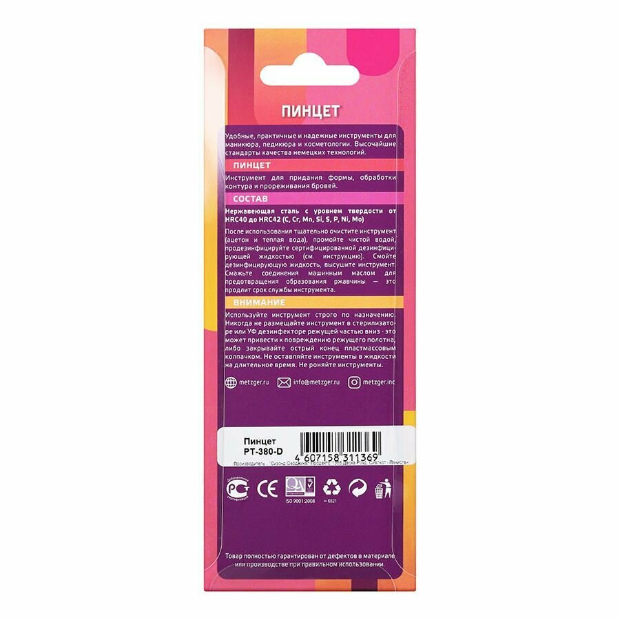 Благодаря использованию пинцета PT-380-D Titanium от Metzger вы сможете избавиться от нежелательных волосков на лице и теле.
