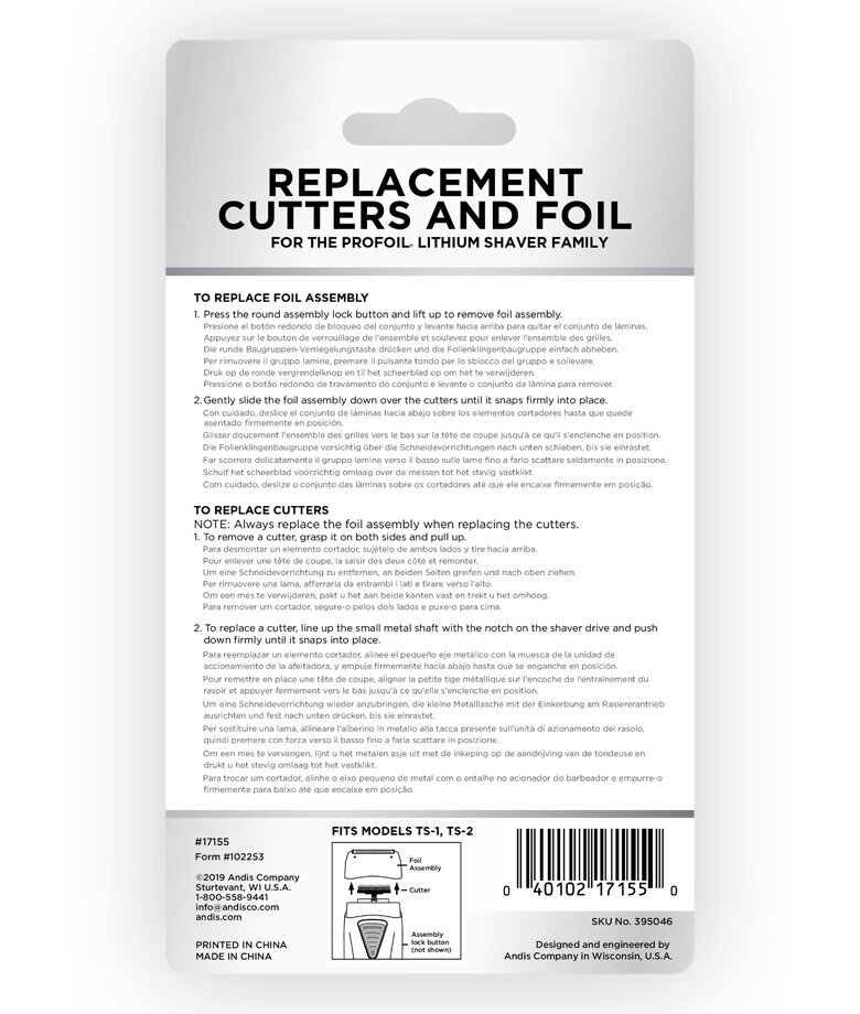 Сменная двойная режущая головка и сменная литий-титановая позолоченная сетка Andis TS-1 ProFoil™ Lithium Titanium Foil & Cutters для шейвера Andis TS-1 Profoil Lithium Shaver. Сетка гипоаллергенна - не вызывает раздражений. Легко заменяется без использования дополнительных инструментов. Предназначена для бритья, удаления "антеннок", подчистки оставшихся после триммера волосков и финишных работ при фейдинге. Обеспечивает превосходное гладкое бритье без ущерба для чувствительной кожи. Длина среза 0,1 мм. Набор предназначен для сухого бритья.
