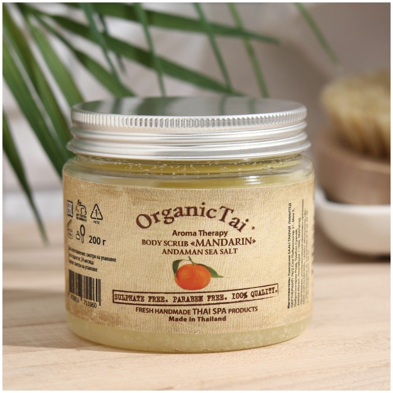 РУЧНАЯ РАБОТА. ТАЙСКИЙ СПА. АРОМАТЕРАПИЯ. Уникальная формула. Не содержит воду, консерванты парабены. СОЛЬ АНДАМАНСКОГО МОРЯ, обогащенная органическими маслами и экстрактами МАНДАРИНА, ЖОЖОБА, АЛОЭ ВЕРА, ОГУРЦА, витаминами С и Е не только качественно устраняет сухость кожи, очищает от ороговевших клеток и обновляет ее, но и насыщает кожу полезными микроэлементами, обеспечивает экстраувлажнение, питание кожи, делает ее эластичной, упругой и нежной. Этот скраб рекомендован в комплексной борьбе с целлюлитом. Натуральный аромат МАНДАРИНА помогает восстановить силы и создает хорошее настроение. Ваша кожа станет восхитительно нежной и шелковистой после применения этого натурального скраба.
