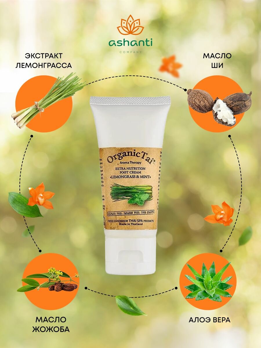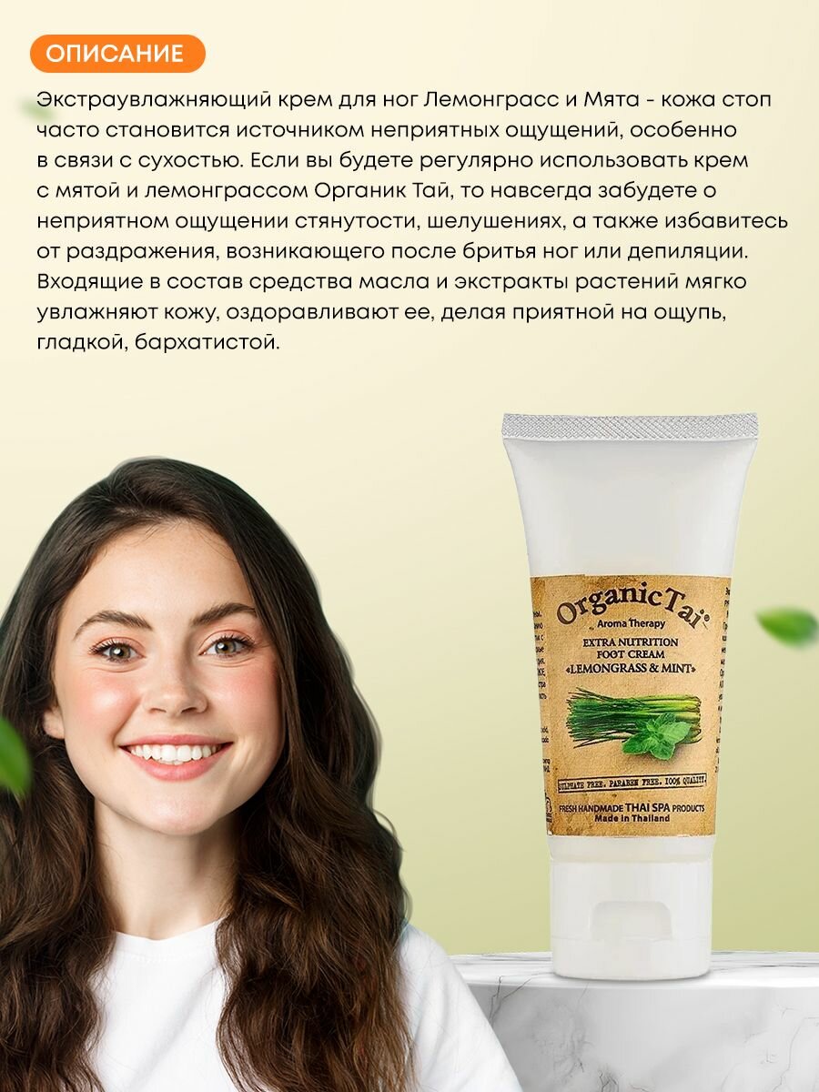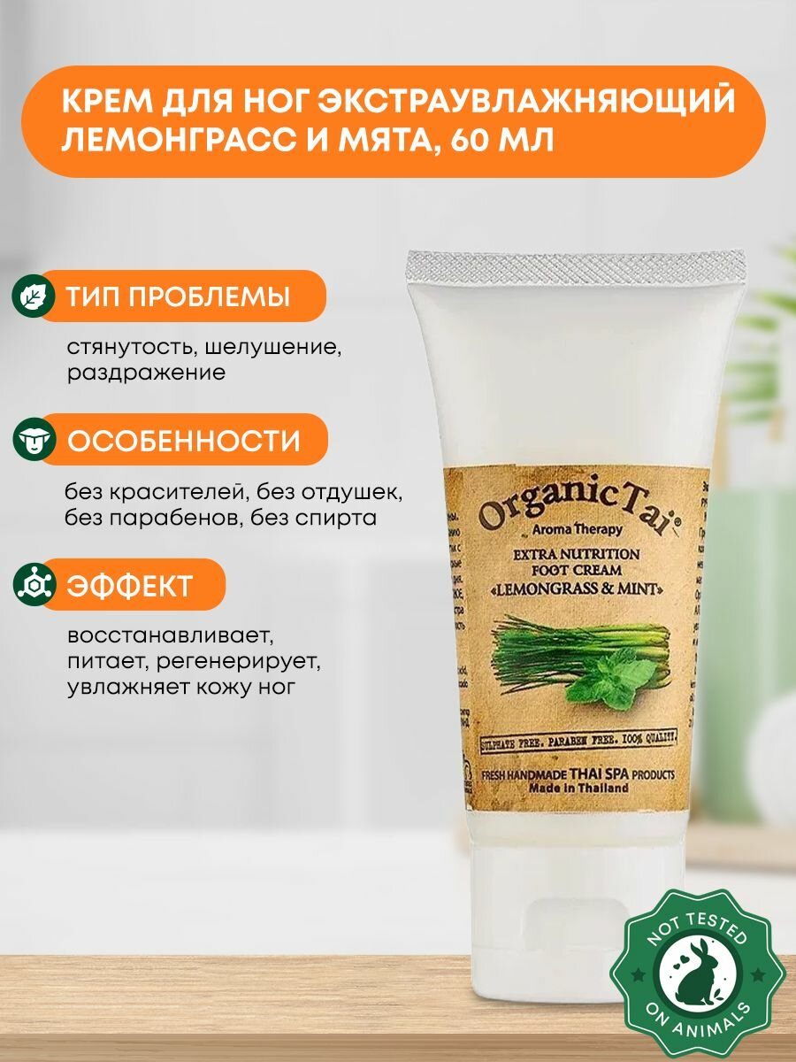 ORGANIC TAI Крем экстраувлажняющий для ног Лемонграсс и мята 60 мл (8858816734594)