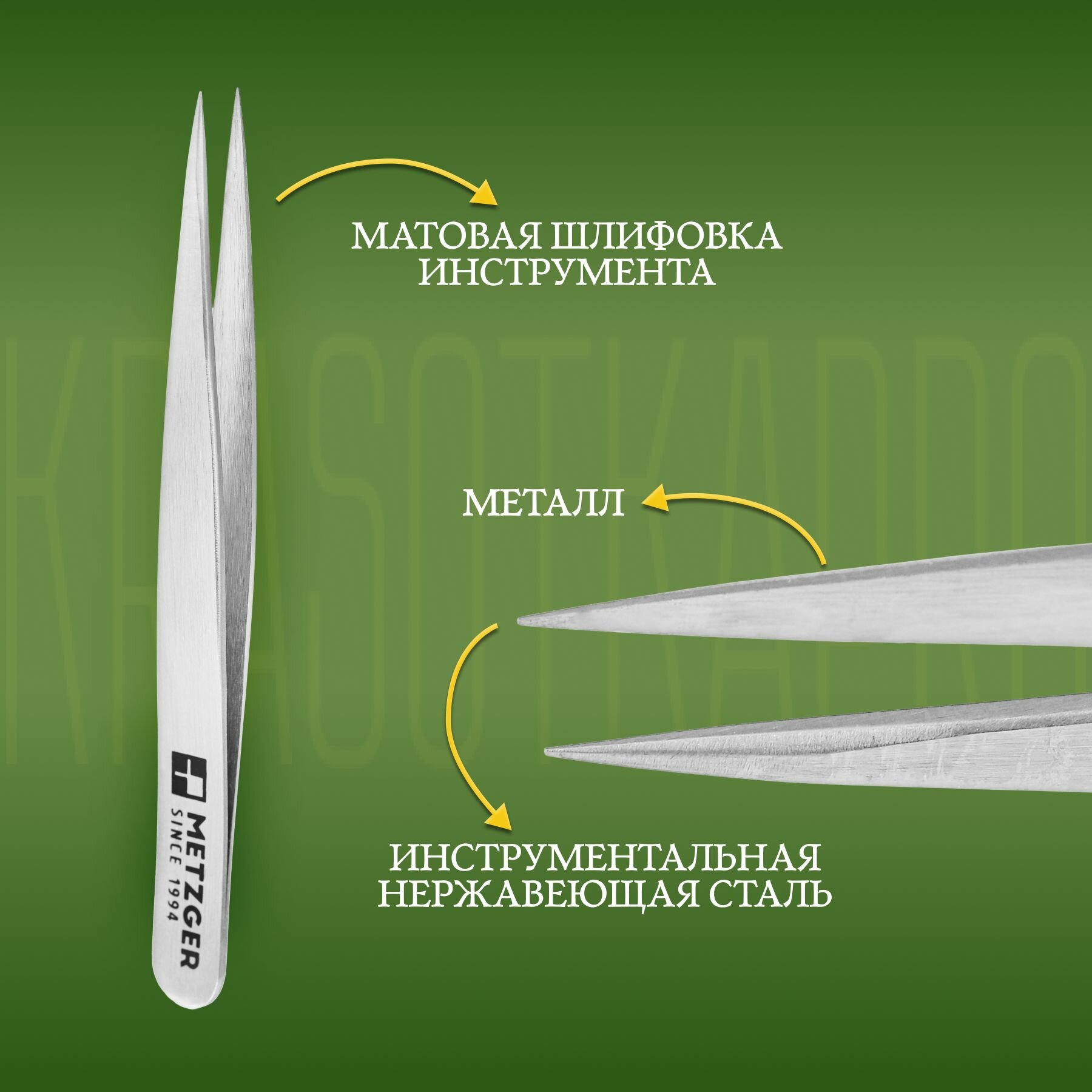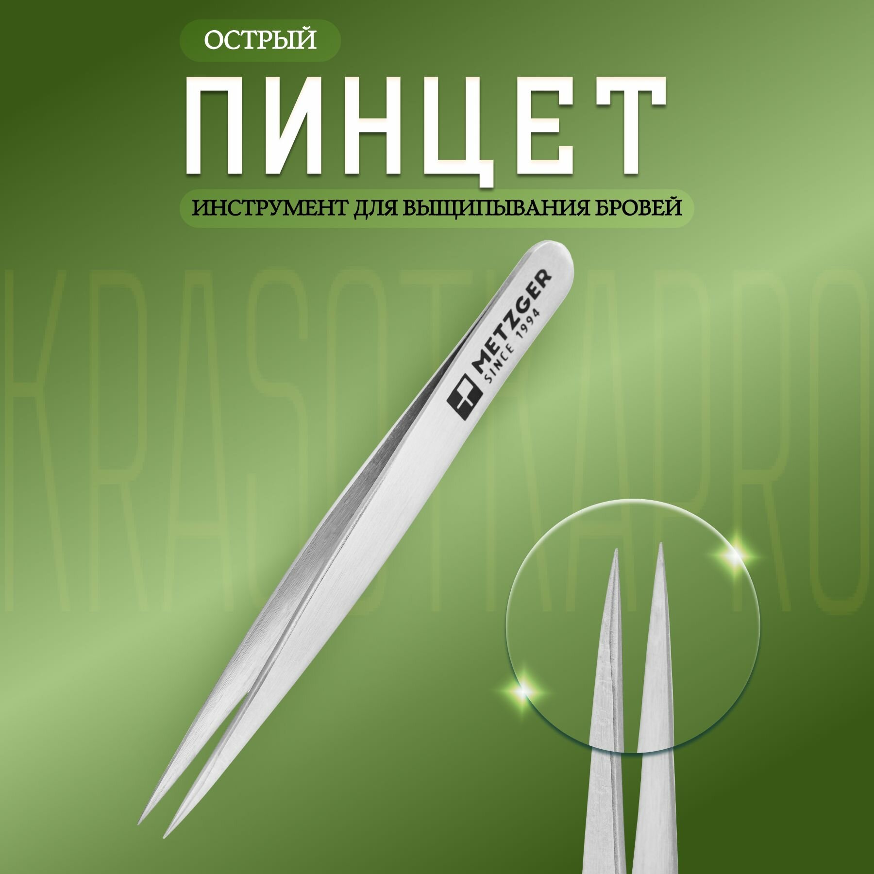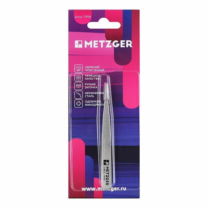 Качественный, удобный, практичный, компактный и довольно простой в использовании пинцет Metzger поможет вам избавиться от неэстетичных волосков на лице и теле и придать бровям великолепную очерченную форму.